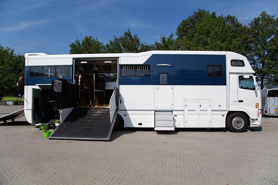Nadat ik voldoende had gezien van het springen ging ik een kijkje nemen ‘achter de schermen’. Ik wist wel dat er met paardensport veel geld gemoeid is, maar dit overtrof zelfs mijn verwachtingen. Naderhand heb ik op internet eens opgezocht wat de aanschaf en het onderhouden van één ‘doodgewoon’ paard kost. Niet dat ik plannen in die richting heb hoor. Als kind was ik wel een paardenmeisje en heb ook les gehad in de manege in Kuinre. Daar is het ook bij gebleven.