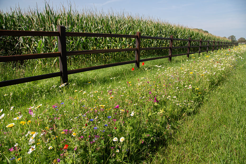 Na al die pracht en praal ben ik verder gefietst. Zelfs het hekwerk om de akkers in de buurt van het paardensportcentrum waren speciaal voor deze gelegenheid gebeitst. Ik heb voornamelijk genoten van de bloemetjes in de berm.
