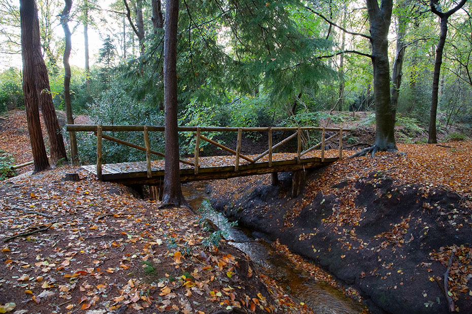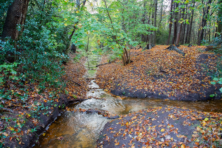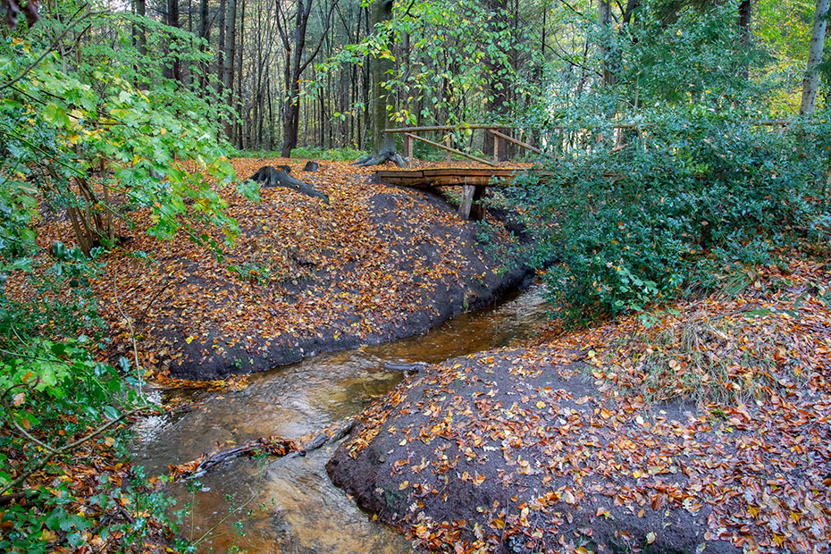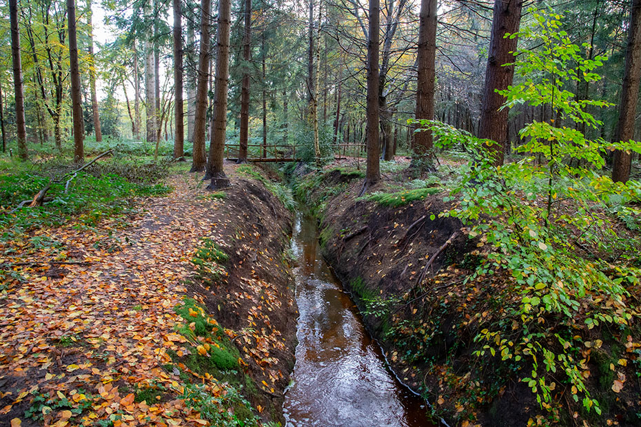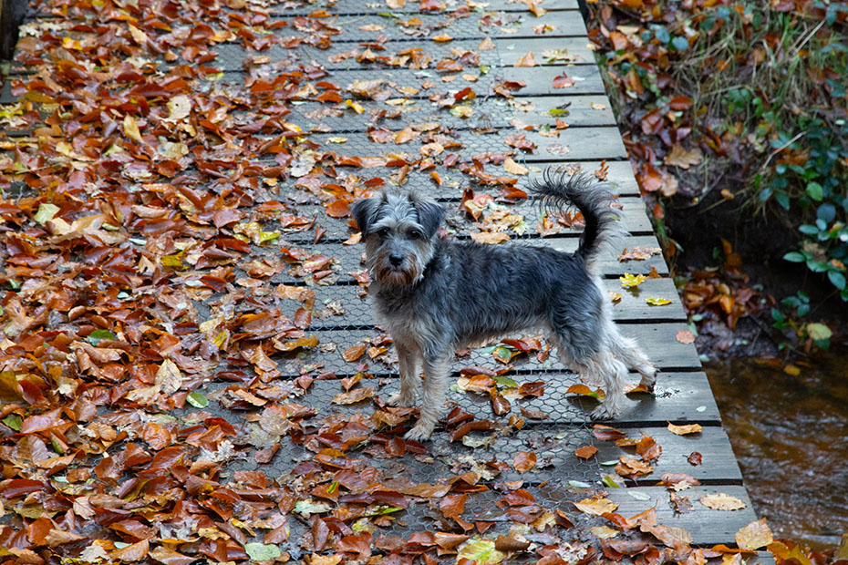 Dit zogenaamde Sterrebos is omstreeks 1766 aangelegd door Nicolaas van Heloma. Hij liet het laatste veen in het gebied afgraven en liet veel bomen planten. Ook liet hij wegen aanleggen zoals de weg door Frederiksoord. Het was voor het eerst van mijn leven dat ik een wandeling maakte door dit bos. Ik vond het een verrassend mooi bos. Terwijl ik de stroompjes fotografeerde passeerde mij een koddig hondje.