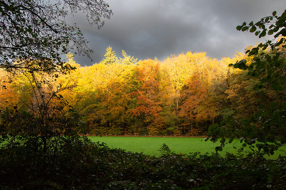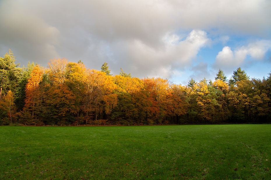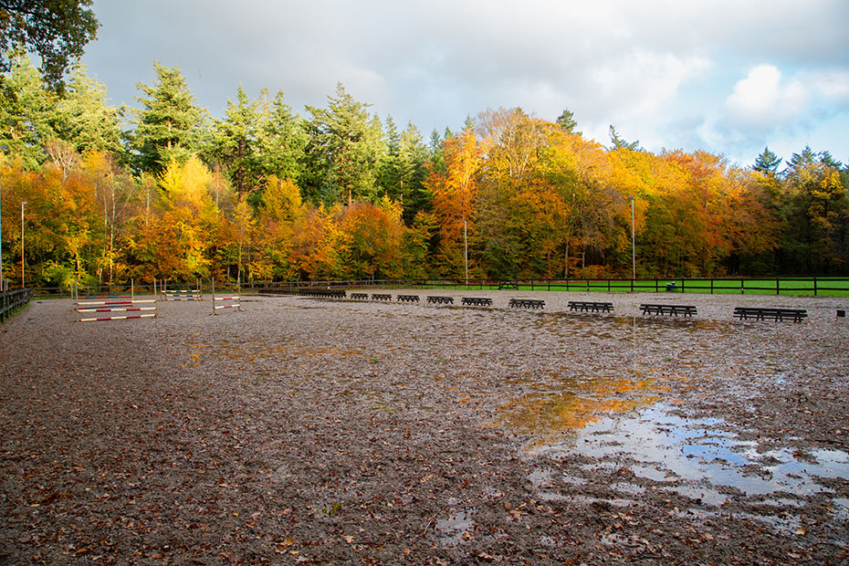 Ik was op zoek naar bomen in herfsttooi. Dat viel nog flink tegen. Totdat ik bij een bosrand kwam die prachtig werd beschenen door de zon. De herfstkleuren vlamden me tegemoet. Nadat ik de eerste foto had genomen wandelde ik verder en kwam uit bij ponyclub en rijvereniging ´Generaal van den Bosch´. Volgens mij kan de paardenrijbak voorlopig niet gebruikt worden…