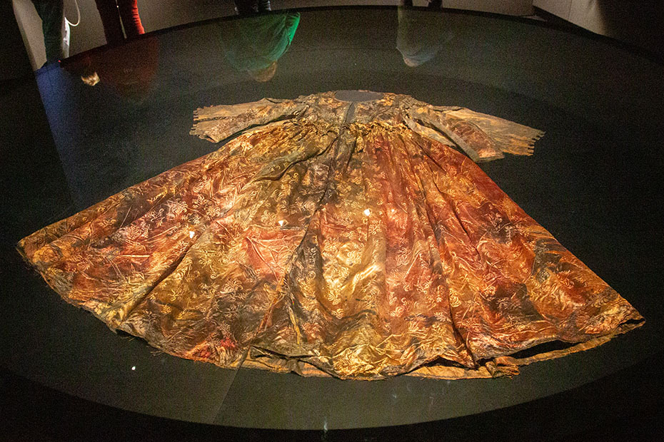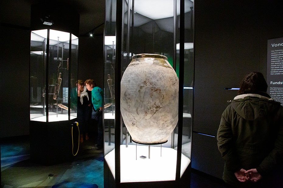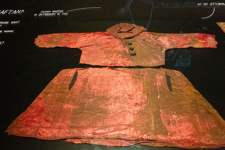 De vondsten liggen tentoongesteld in speciale zuurstofvrije vitrines. De ruimte is voor de sfeer en voor het behoud van de kledingstukken donker gehouden met uitzondering een aantal spotjes. Foto’s maken mocht, maar dan zonder gebruik van flitslicht. De ISO moest dus flink omhoog en dat zie je terug in de kwaliteit van de foto’s.