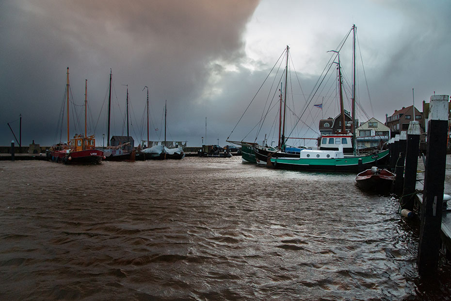 De dreigende lucht boven de haven en het IJsselmeer was een foto waard.