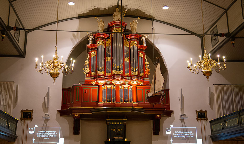 Op Urk wonen veel mensen die het protestantse geloof aanhangen. Er zijn op Urk dan ook vele kerken. Een van de kerken is de Bethelkerk. Ik nam een kijkje binnen in de Bethelkerk. De rest van de groep was ik al fotograferend kwijt geraakt. Gelukkig is er de mobiele telefoon waardoor we elkaar weer snel konden treffen.