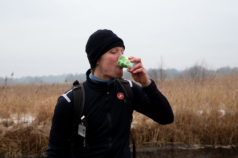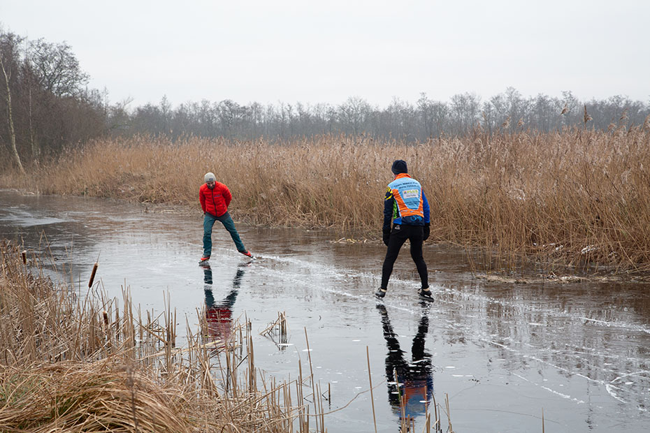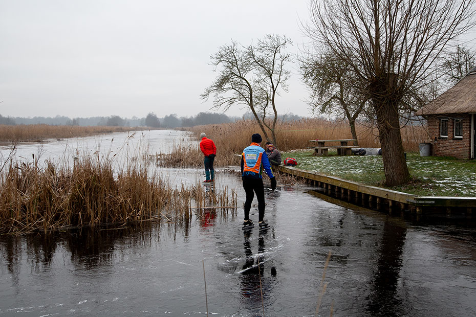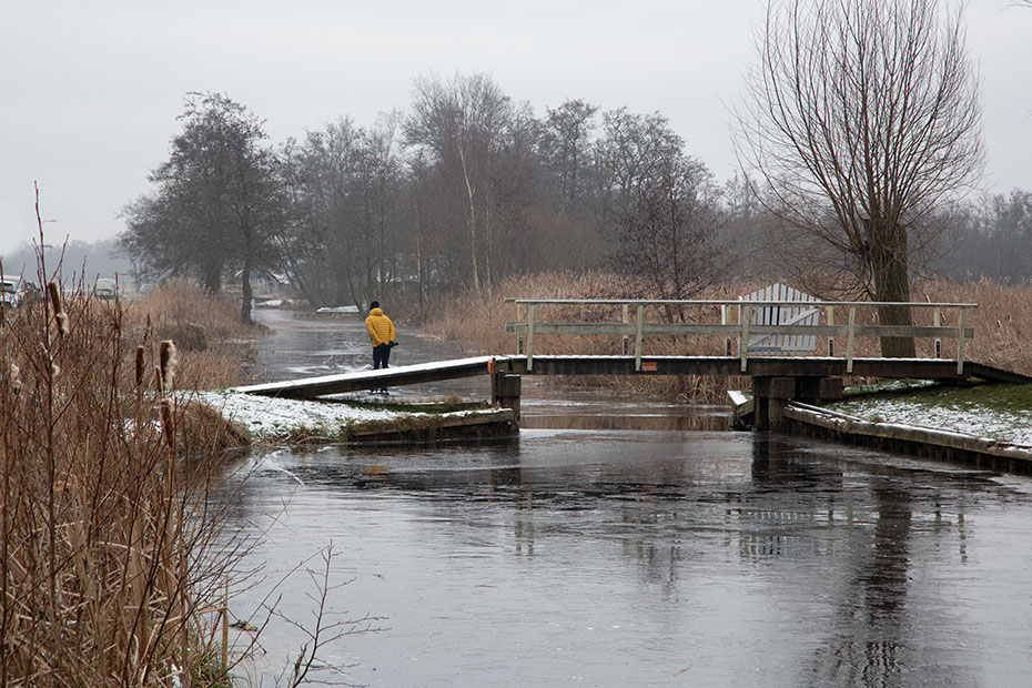 Een paar waaghalzen gingen wat verder dan verstandig was. Onder het bruggetje lag helemaal geen ijs. Ze vonden zelf ook al snel dat het niet verantwoord was en keerden al snel weerom.