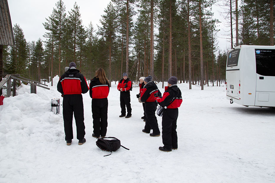 Op de tweede dag van ons verblijf maakten we een excursie naar een rendierfarm. Dergelijke excursies zijn overigens perfect geregeld. Wij boekten onze tocht bij Lapland Safaris in Rovaniemi. In het hoofdgebouw van Lapland Safaris werden we voorzien van een overall, oversokken, laarzen, muts, sjaal en wanten. In een luxe touringcar werden we naar de farm gereden.
