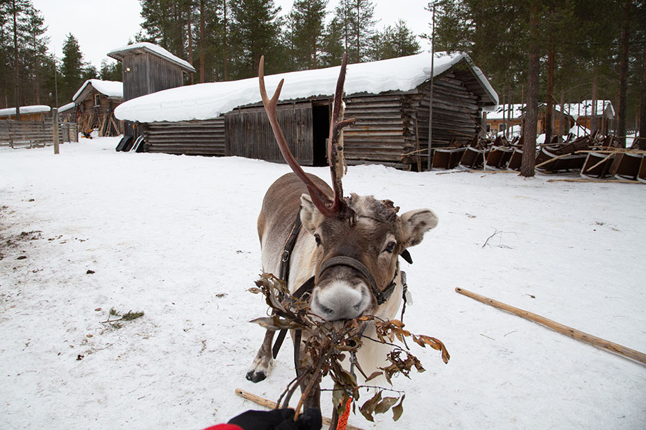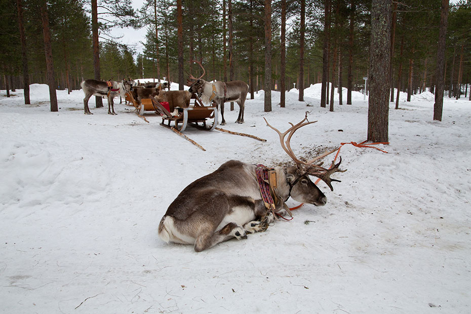 In de huidige tijd hebben rendieren het moeilijk in het wild. De rendieren leven in principe van het mos en gras wat aan de naaldbomen groeit. Echter groeit dat alleen maar aan de bomen die tenminste 150 jaar oud zijn! En die zijn er nog maar weinig, vanwege de houtkap. Een ander opkomend probleem is dat het niet koud genoeg is in het begin van het winterseizoen. Doordat sneeuw smelt en weer bevriest komt op de graslanden een laag ijs te staan. Rendieren kunnen wel door sneeuw grazen maar komen niet door het ijs heen. Om deze redenen worden de dieren tegenwoordig bijgevoerd. Na de prachtige tocht mochten wij ze voorzien van een gedroogd blaadje.