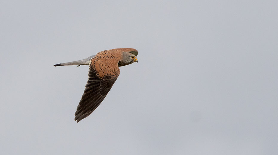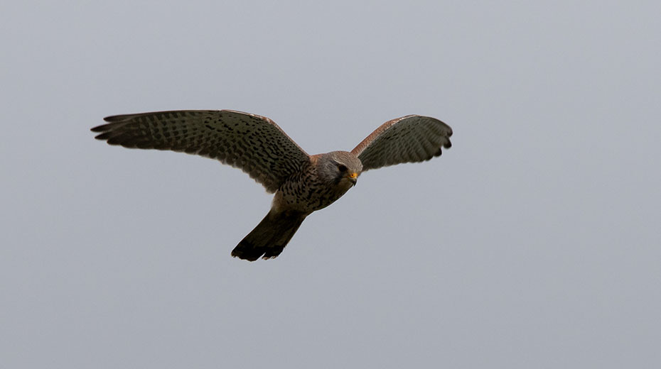 Vlak voordat we in de auto zouden stappen om onze weg te vervolgen kwam er een torenvalk aangevlogen. De torenvalk bleef in de lucht hangen binnen het bereik van de 150-600 mm zoom.