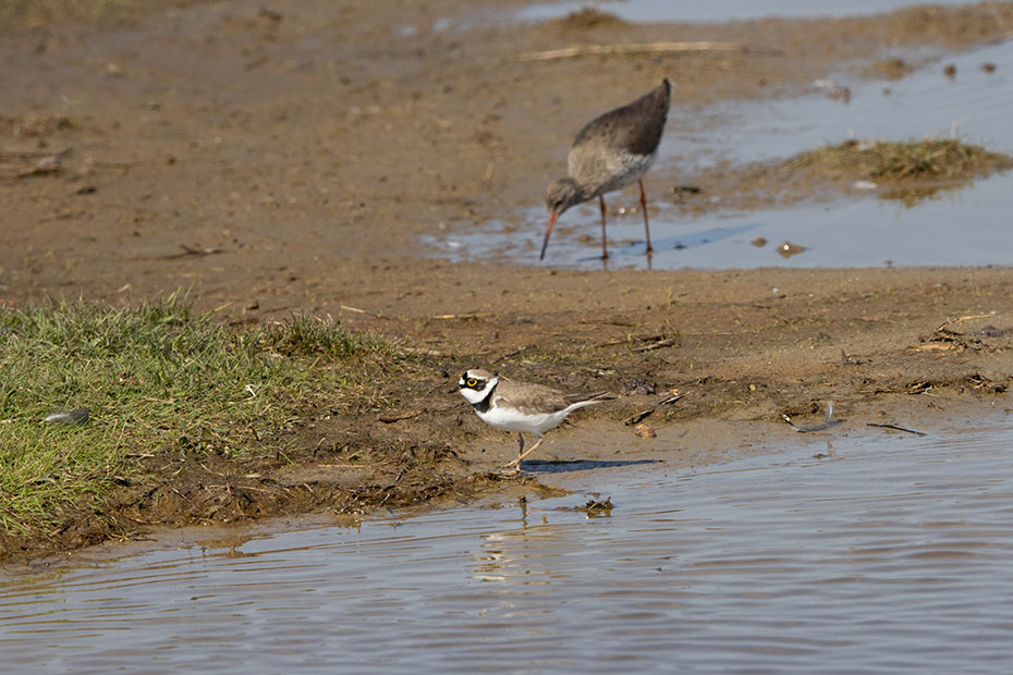 De kleine plevier vind ik altijd zo koddig met die gele rand om het oog. Eerst zoomde ik in op de kleine plevier.