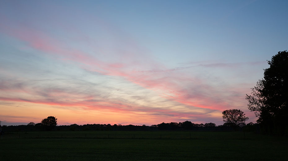 Toen ik gisteravond zag dat de lucht wel mooi kleurde nadat de zon was ondergegaan, toen heb ik daar ook nog enkele foto’s van gemaakt. Vanavond maar weer zien of er kans is op Noorderlicht en of ik het kan fotograferen vanuit het weiland…