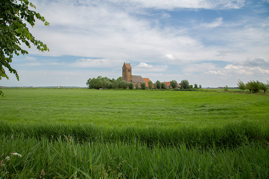 Onderweg naar Workum zagen we vanuit de auto een mooi plaatje. In de uitgestrektheid van het Friese platteland stond een kerk. Dat beeld vroeg om nadere verkenning.
