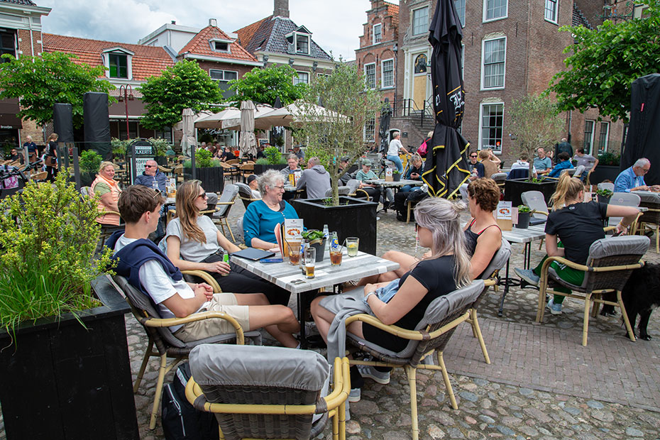 Ook op de zondag in Gaasterland deelde de familie zich op in groepen. Twee mannen gingen naar Workum, naar het Jopie Huisman museum en daarna door naar Hindeloopen. Een groepje ging met het pontje over en dan lopend naar Workum. Een deel bleef op ons terras aan het water. Mijn zus, Anna en ik gingen met twee auto’s naar Workum zodat de wandelaars weer meer terug konden rijden in de auto.