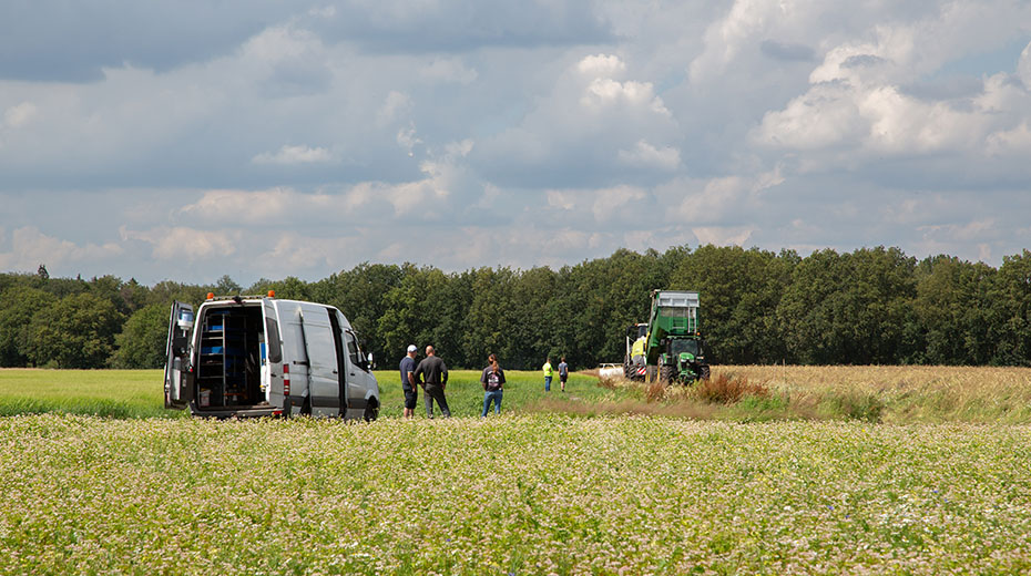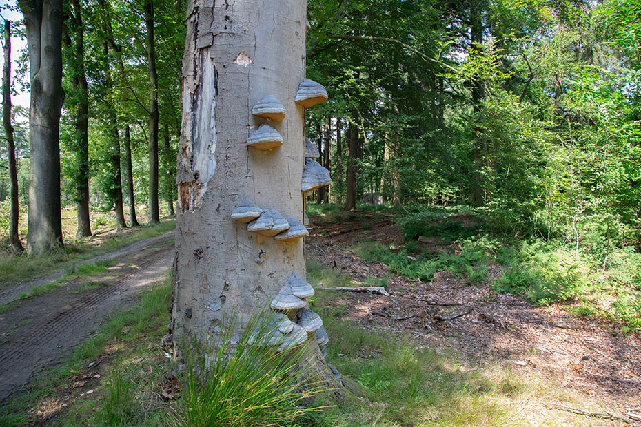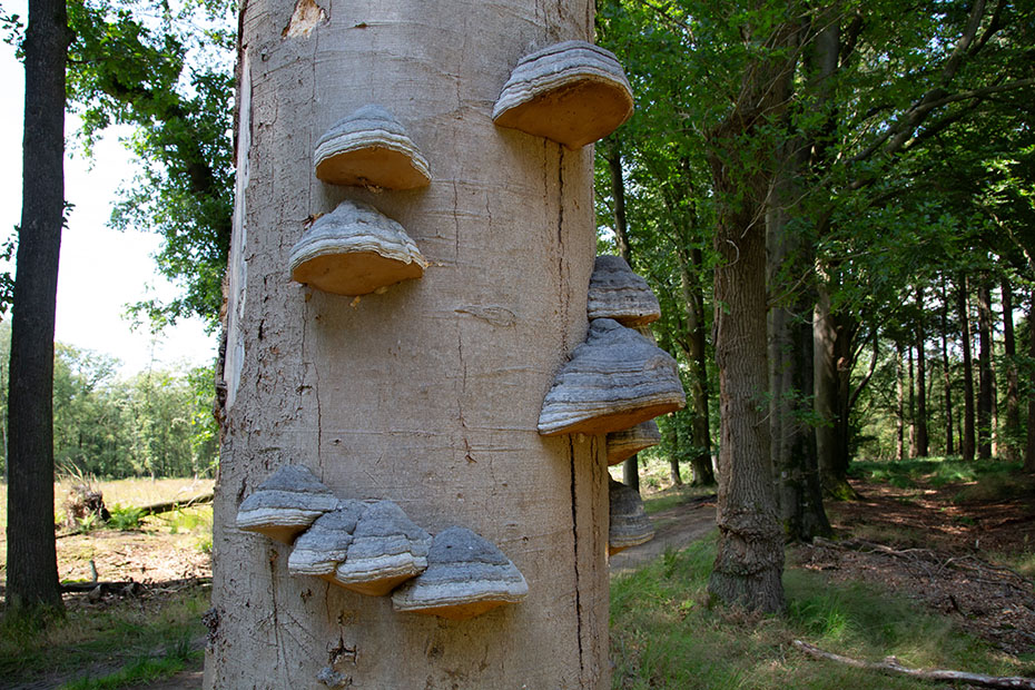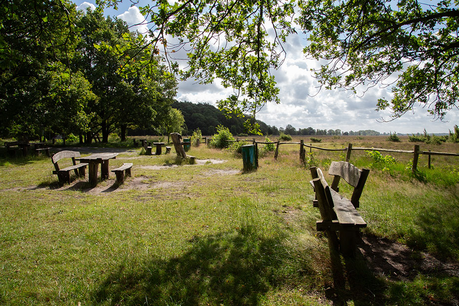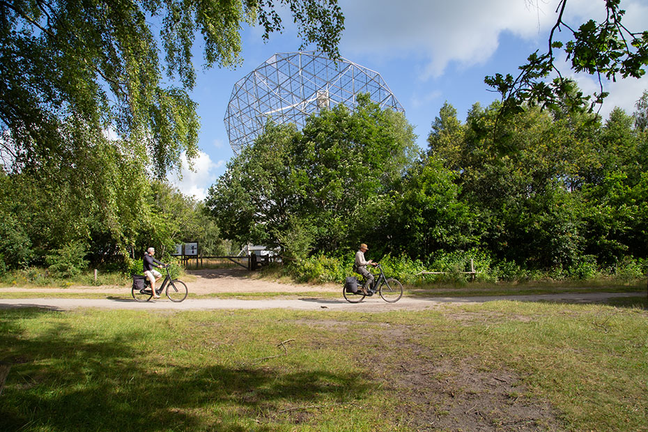 Op een zonnige dag ging ik wederom naar het Dwingelderveld. Ik parkeerde de auto op dezelfde plek als de vorige keer en haalde mijn fiets van de auto. Mijn fietstassen propte ik vol met fotoapparatuur en de nodige proviand. De accu schoof ik onder de bagagedrager en op dat moment had ik een onaangename verrassing. De accu had nog maar 1/3 capaciteit. Dat was op zich geen ramp want ik fiets op zo’n dag niet veel kilometers. Als eerste fietste ik naar de picknickplaats bij de radiotelescoop. Ik was op dat moment de enige bezoeker. De ‘grijze golf’ komt meestal wat later op gang. 😉