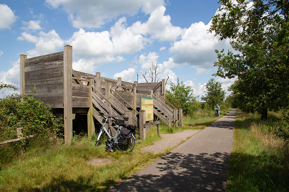 Na de foto’s van het heideblauwtje heb ik nog een tijdje tevergeefs gewacht op de grauwe klauwier. Even later wandelde ik terug naar het fietspad en stapte op de fiets. Ik had nog geen honderd meter gefietst toen mijn ondersteuning volledig uitviel. Ook dat was geen ramp, ik heb namelijk een e-Bike waarop ook prima te fietsen is als de accu leeg is. Het is alleen wat harder werken…