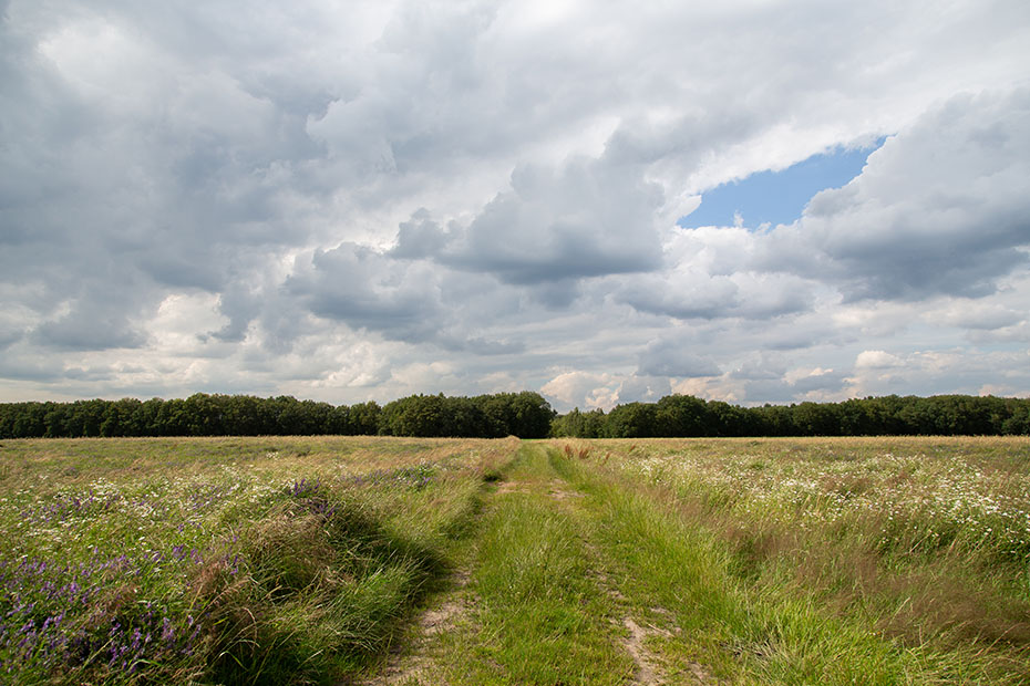 Vervolgens ben ik naar het gebied gefietst waar ik de vorige keer de grauwe klauwier fotografeerde. De grauwe klauwier heb ik wel gezien, maar die zat deze keer veel te ver weg. Het was overigens wel genieten van de mooie wolkenluchten.