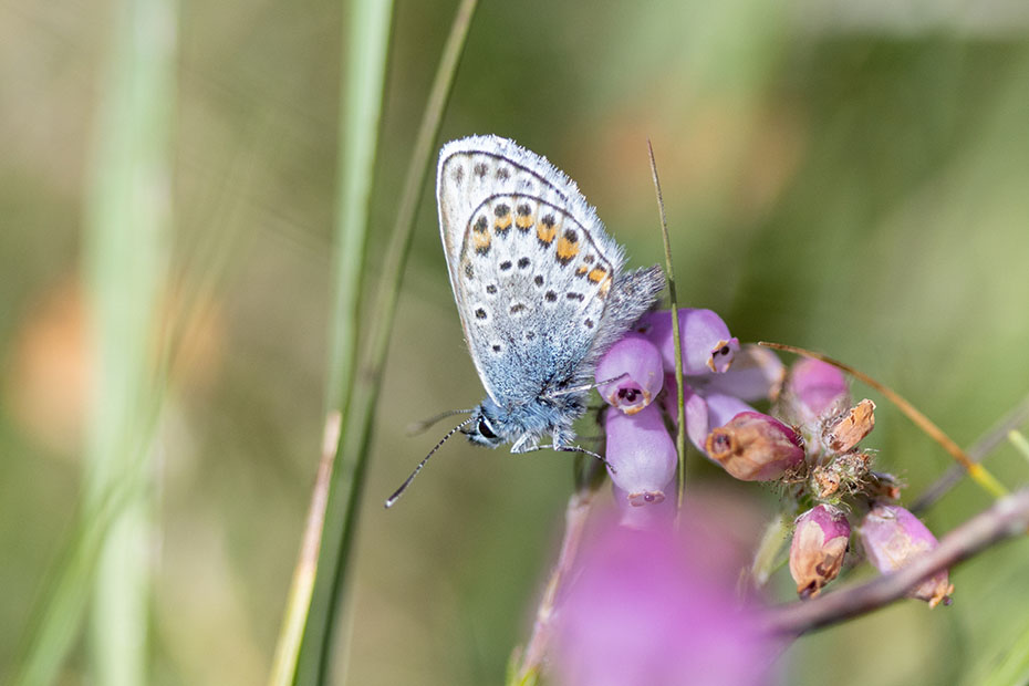 De dopheide stond daar mooi in bloei en op die dopheide zat een heideblauwtje. Hoe mooi wil je het hebben.