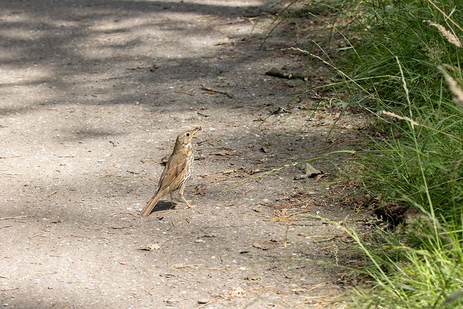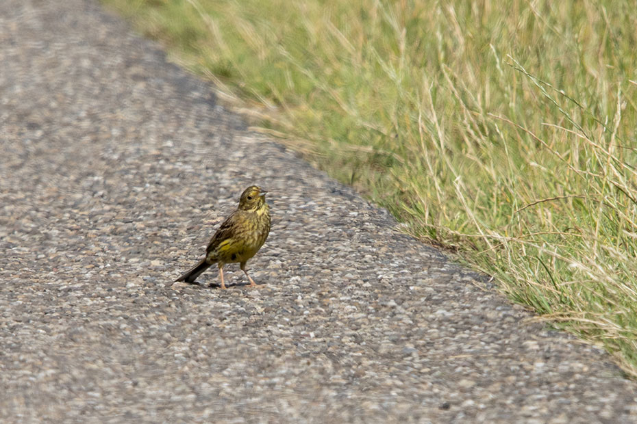 Nog weer honderd meter verder diende zich het volgende onderwerp aan, in de verte liepen twee puttertjes in het zand naast het fietspad. Ook al was het fotografisch gezien geen mooi plekje ze moesten toch wel even op de foto.
