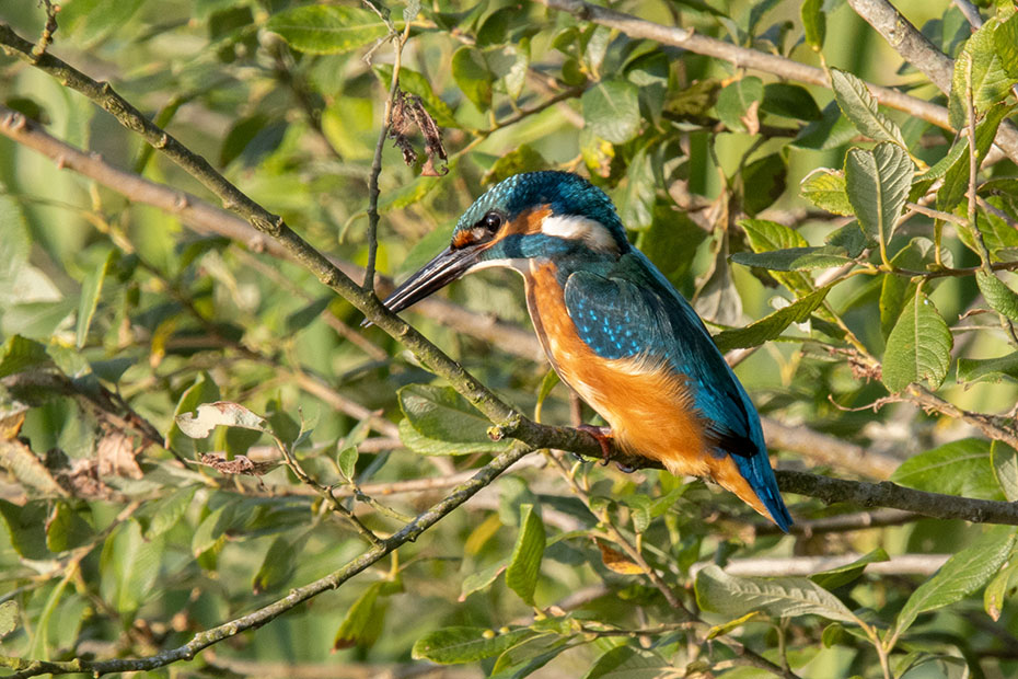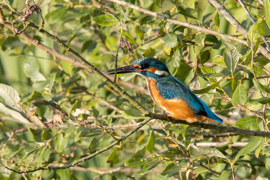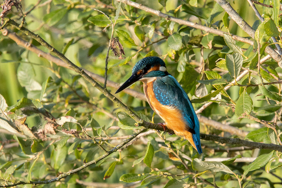 Cor ging een verdieping lager en keek uit het zijraam van de kijkhut. Daar ontdekte hij een ijsvogel. Hij riep ons snel en zo konden we meegenieten van deze mooie waarneming. Alle lof voor Cor.