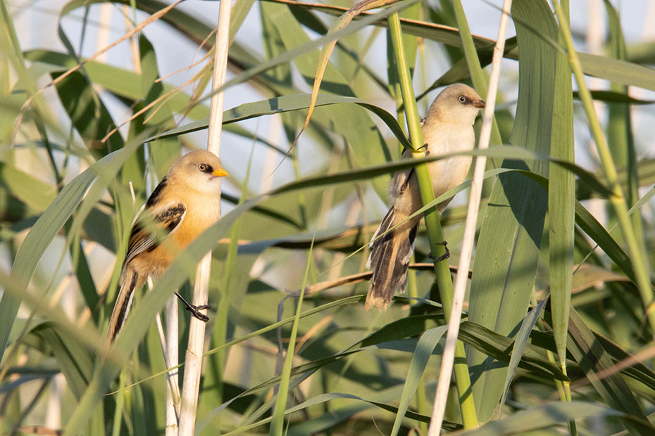 Maar het was niet alleen maar kommer en kwel, we deden daar namelijk een mooie waarneming. Een groep baardmannetjes hield zich op tussen het riet.