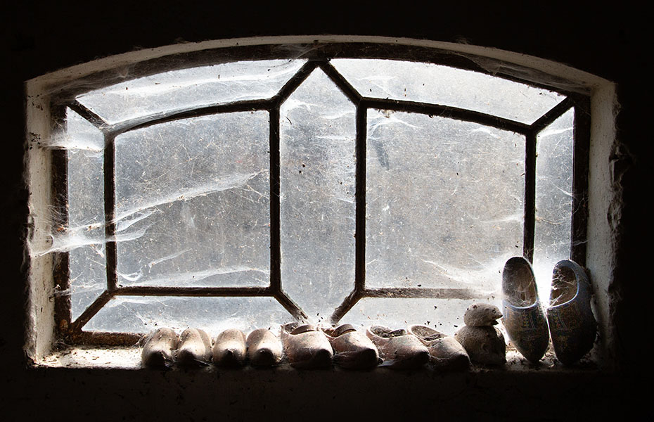 We zijn terug van een heerlijke vakantie. We kampeerden ‘bij de boer’. De komende tijd zal ik hier foto’s laten zien uit het hoge noorden van Fryslân. Nu eerst de vakantiespullen opruimen, caravan schoonmaken en heel veel foto’s uitzoeken, weggooien en archiveren. Vandaag start ik met een foto van een stalraam en de bewaarde klompjes van hun kinderen.