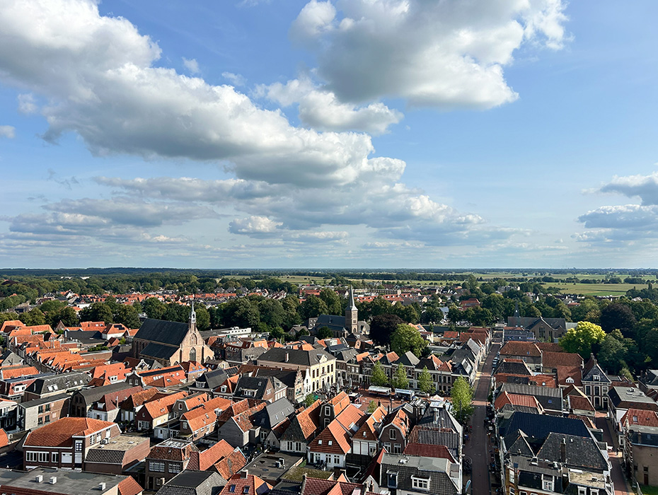 Zaterdag 14 september was het Open Monumentendag. Tevens was dit weekend onze zoon over uit Amsterdam. Dat was een mooie gelegenheid om met elkaar cultuur te snuiven in eigen stad. ‘s Ochtends hebben mijn man, onze zoon en ik Villa Rams Woerthe en het Hildo Kropmuseum bezocht. Toen had ik de spiegelreflexcamera mee. Die fotoserie volgt later. ‘s Middags hebben mijn zoon en ik de 226 treden beklommen van de toren van de Grote of Sint Clemenskerk in Steenwijk.