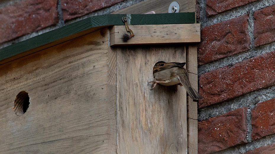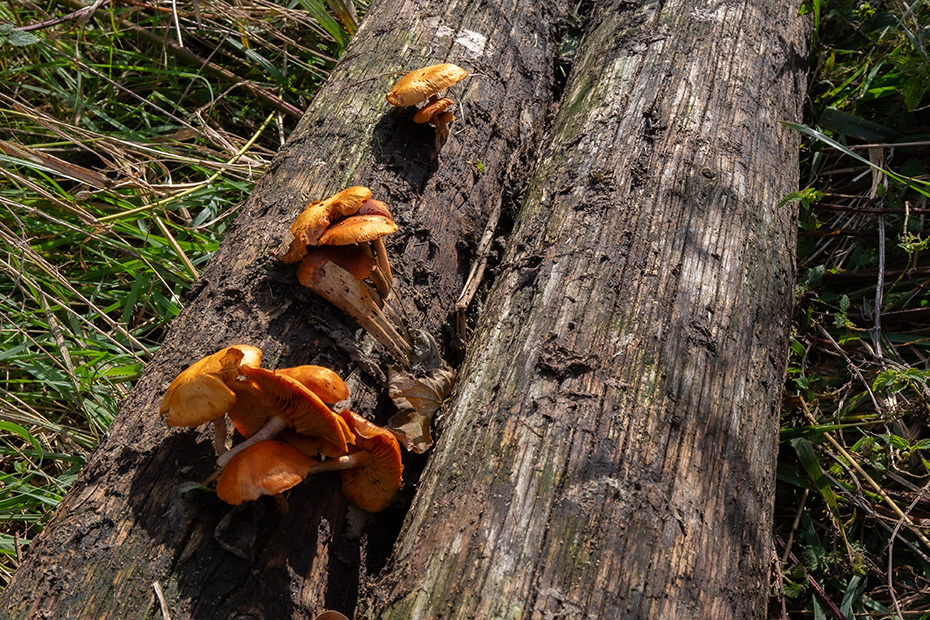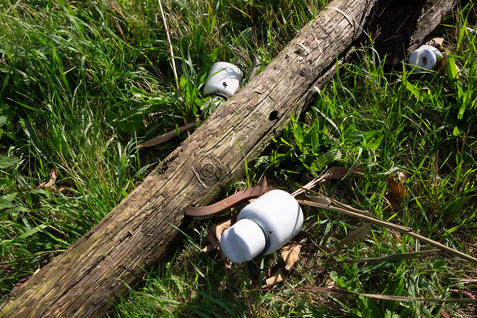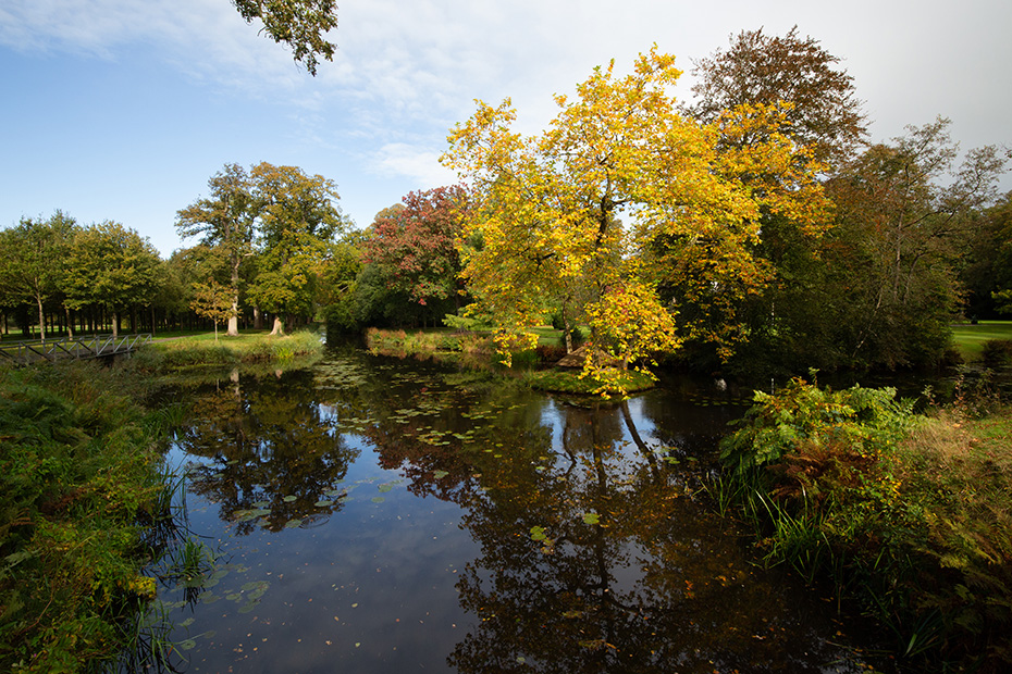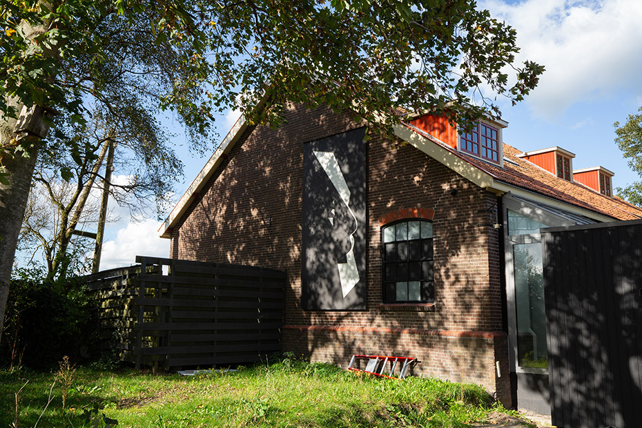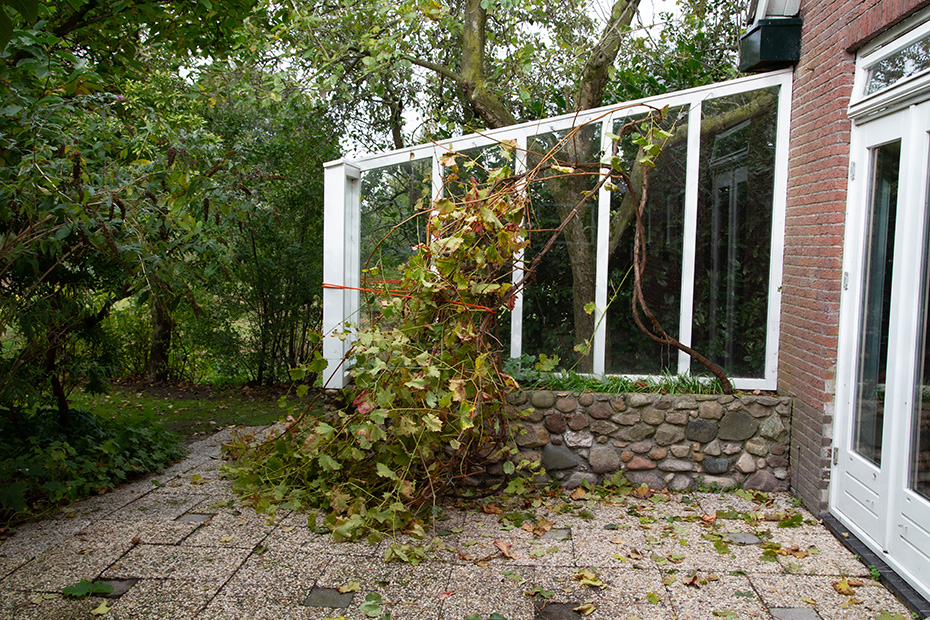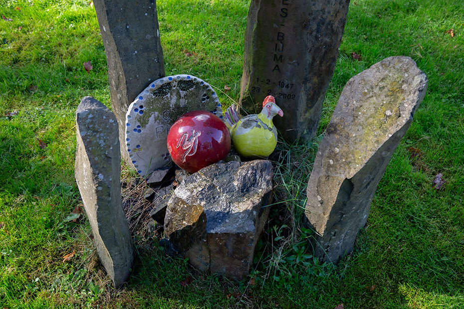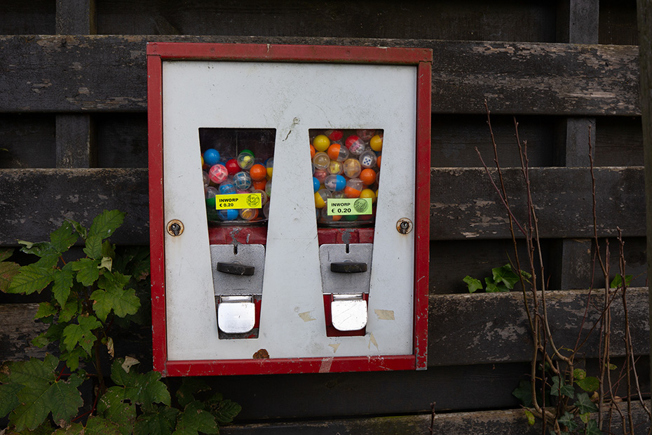 Op het water dreef een dun laagje alg wat helaas de weerspiegeling van het kunstwerk verhinderde. Door de jaren heen zijn de betonelementen steeds meer begroeid door planten en (korst)mossen. Het viel mij op dat het beton op meerdere plekken beschadigd was. Dat in tegenstelling tot een aantal jaren geleden wat bevestigd werd door mijn eerdere fotoserie.