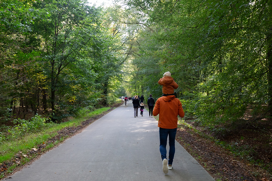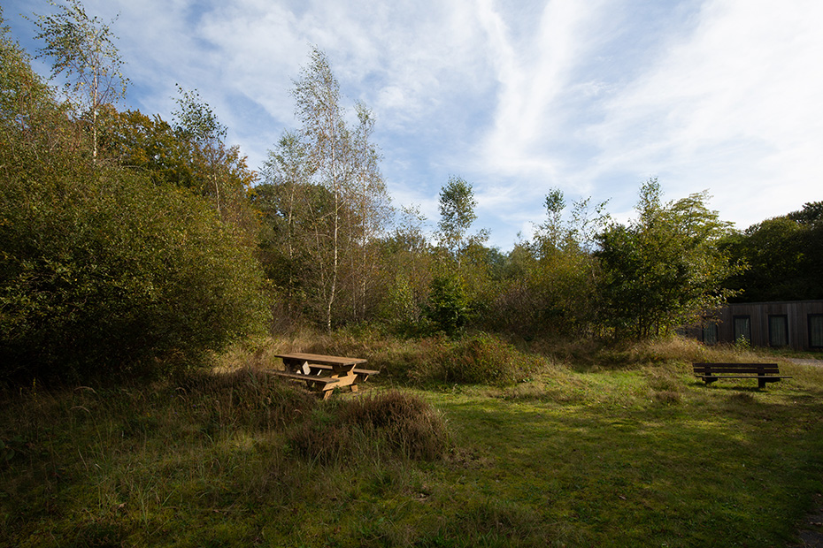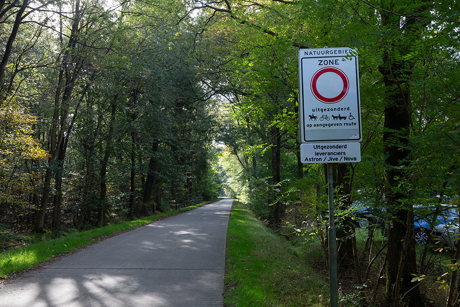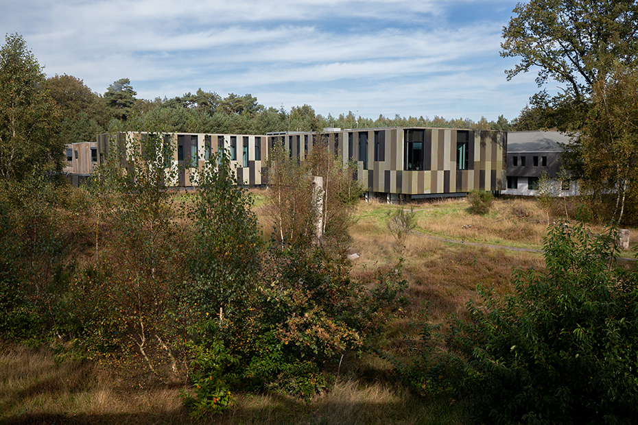 Daarna wandelde ik, met toestemming, binnendoor over het terrein naar de hoofdingang. Ik vind het een prachtige plek om te werken zo midden in de natuur.