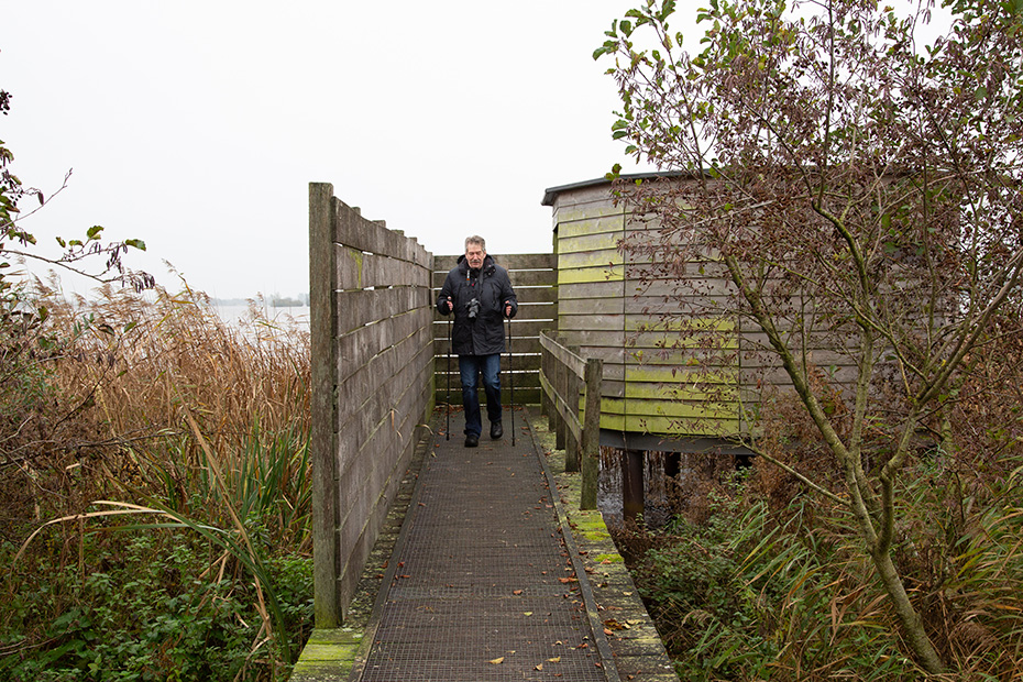 Op weg naar de kijkhut en rond de kijkhut was er echter geen vogel te horen of te zien. We hadden ons warm ingepakt want behalve grijs was het ook echt waterkoud. De gevoelstemperatuur lag nog lager dan de 4°C die op het dashboard stond vermeld. De wind waaide door de openstaande kijkgaten ‘gemeen’ de kijkhut binnen. Lang zijn we daar dan ook niet gebleven en heb ik mij beperkt tot onderstaande foto’s.
