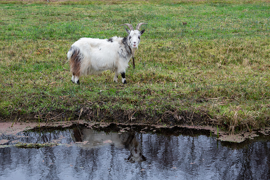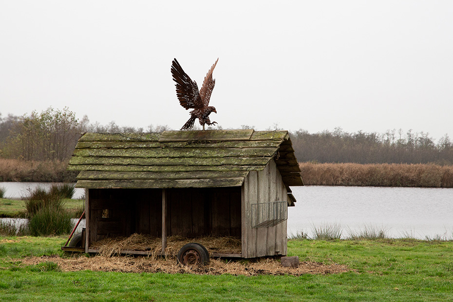 Het was een weldaad om weer terug te zijn in de warme auto. Van de Leijen reden we binnendoor richting Earnewâld. Aan de Feantersdyk zette ik de auto in de berm om een foto te nemen van een landgeit en van een ‘landende zeearend’.