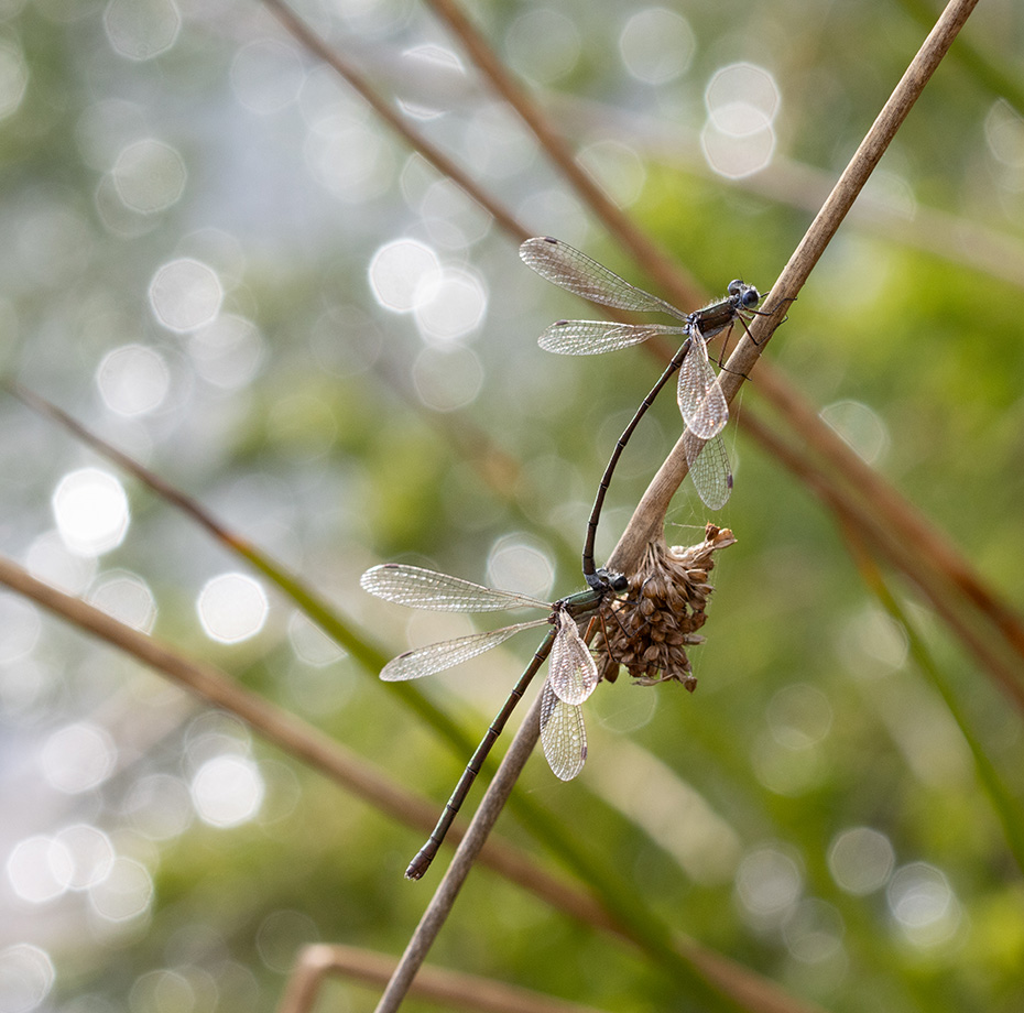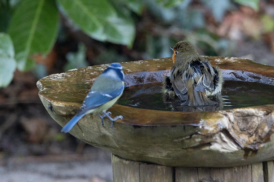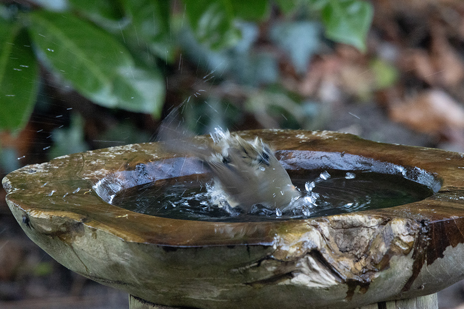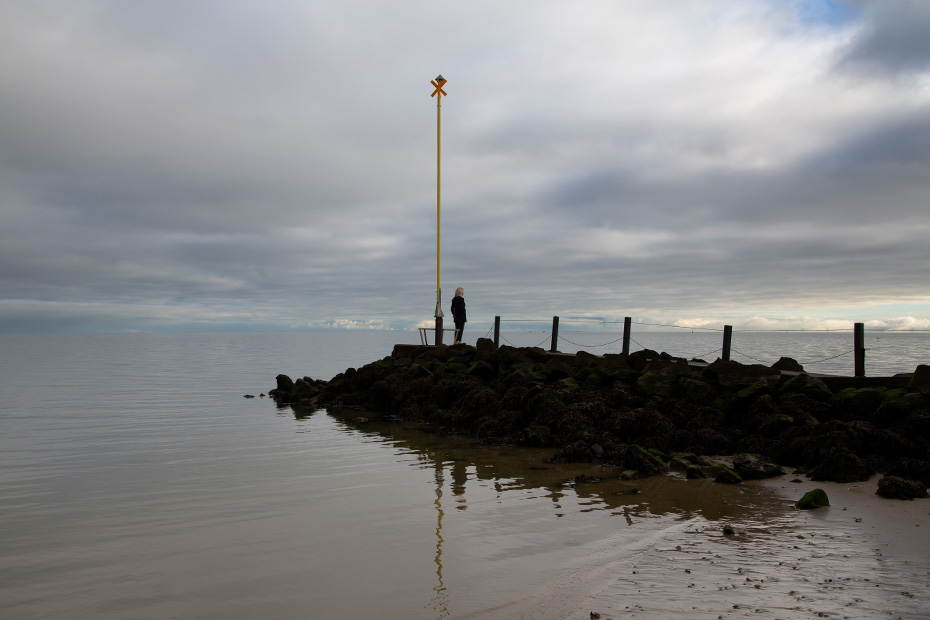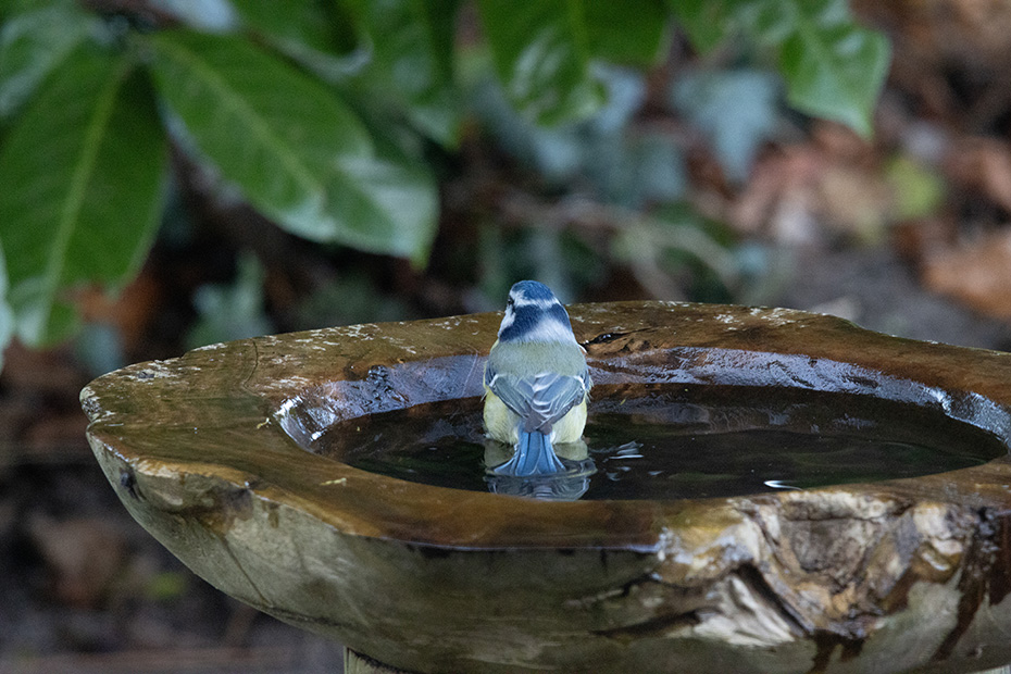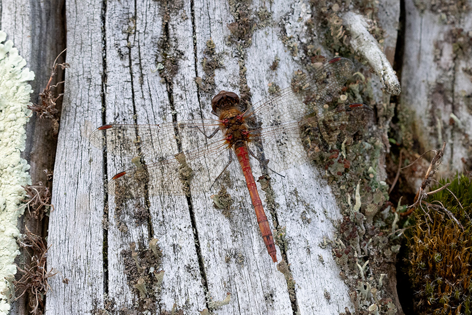 Na dit mooie moment reden we door naar de kijkhut. Aanvankelijk was er geen vogel te zien. Al snel kwam daar verandering in, aan de overkant van het water verschern een blauwe reiger en een grote zilverreiger. Twee aalscholvers kwamen al vissend steeds dichterbij. Een vrijwilliger van Fryske Gea kwam binnen en vertelde ons o.a. over de otters en de blauwe kiekendief in dat gebied. De otter zal zich wellicht niet snel laten zien, maar bij de blauwe kiekendief moet dat vast een keer lukken. Tot slot viel mijn oog op een houten balk met daarop een peilschaal die vlak voor de kijkhut stond. Deze was zo grappig begroeid. Door met de hand scherp te stellen lukte het om door de begroeiing heen er een foto van te maken.