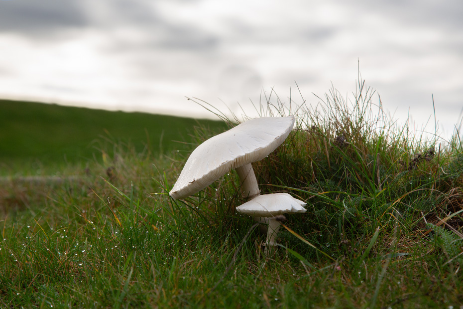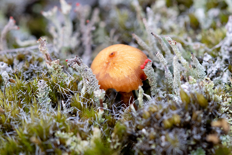 Eenmaal thuis troonde mijn man me mee naar de achtertuin. Daar had hij namelijk in het gras een kleurrijke zwam ontdekt. Ze stonden vlakbij de plek waar wij voor de dieren een rommelhoekje hebben gecreëerd. Het is de grote oranje bekerzwam.
