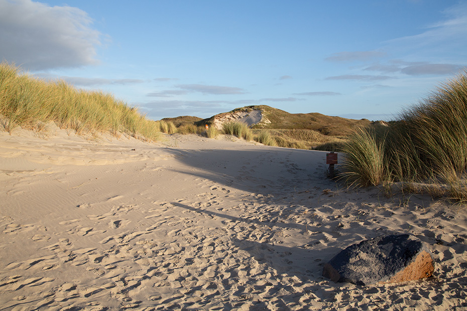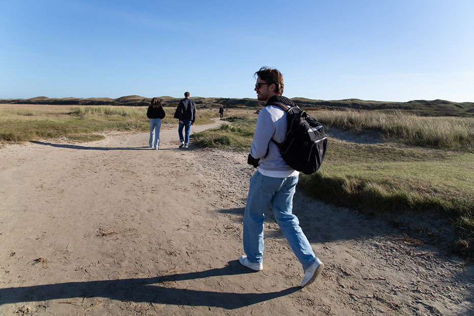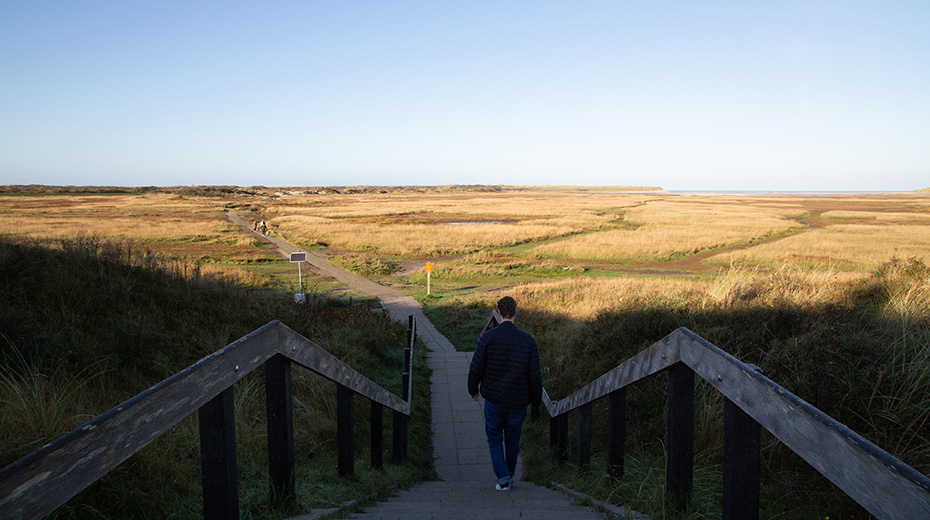 Vanaf de Noordzee is het een flink stuk wandelen naar de trapopgang aan het begin. Op zich is het wandelen geen probleem, maar ik had flink wat fotoapparatuur mee te sjouwen en dat begint met de jaren steeds zwaarder te wegen. Bij elke stap merkte ik hoe mijn schouders en nek er meer onder te lijden kregen. Gelukkig bood mijn lieve schoonzoon aan om het grootste deel van de apparatuur voor me te dragen. Zijn hulp maakte de terugweg een stuk aangenamer en gaf me de ruimte om te genieten van het prachtige landschap om ons heen.