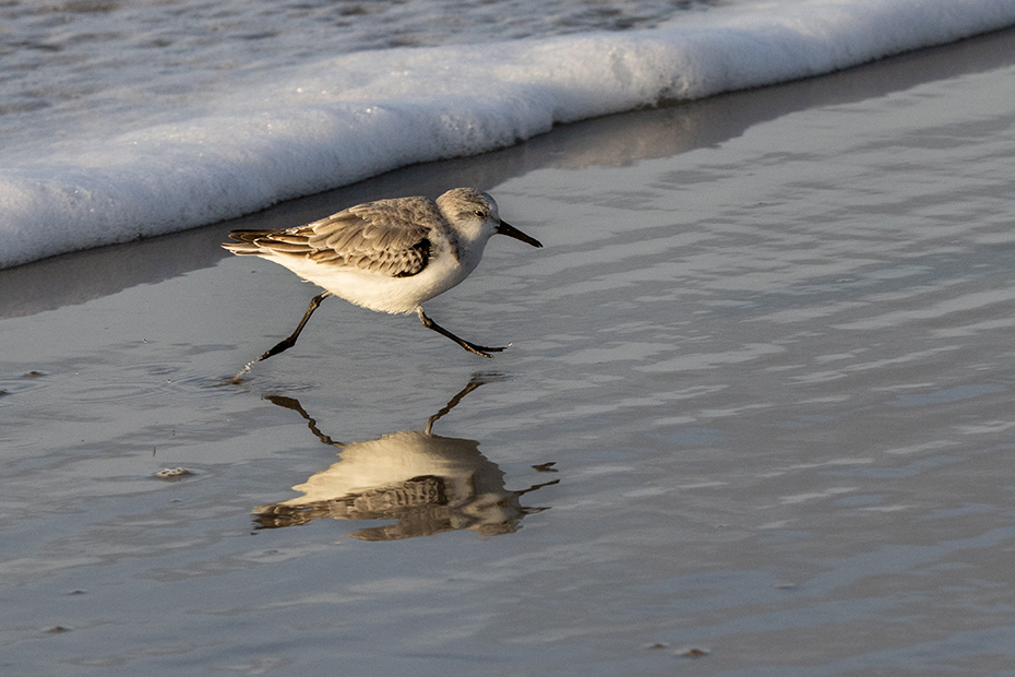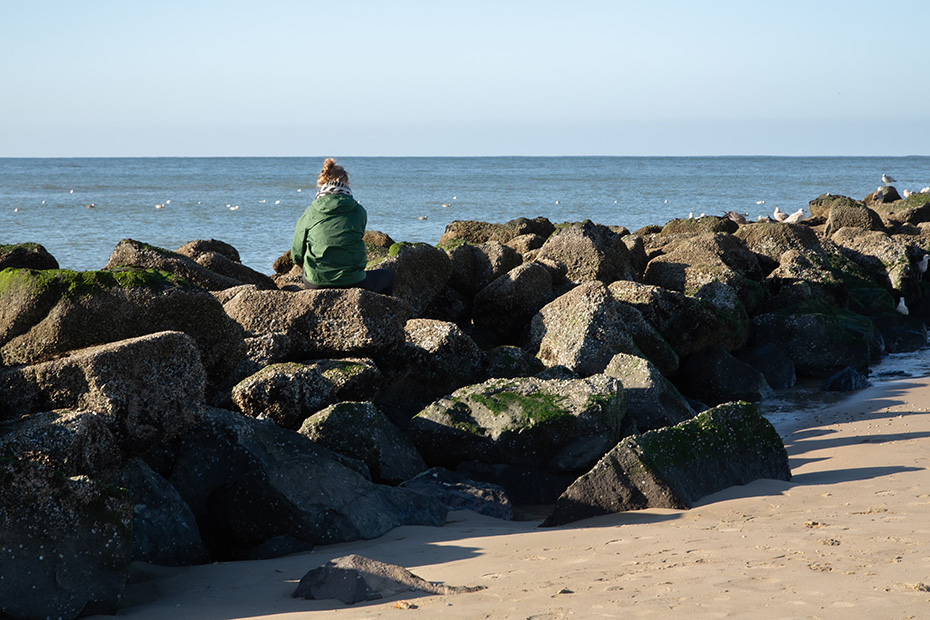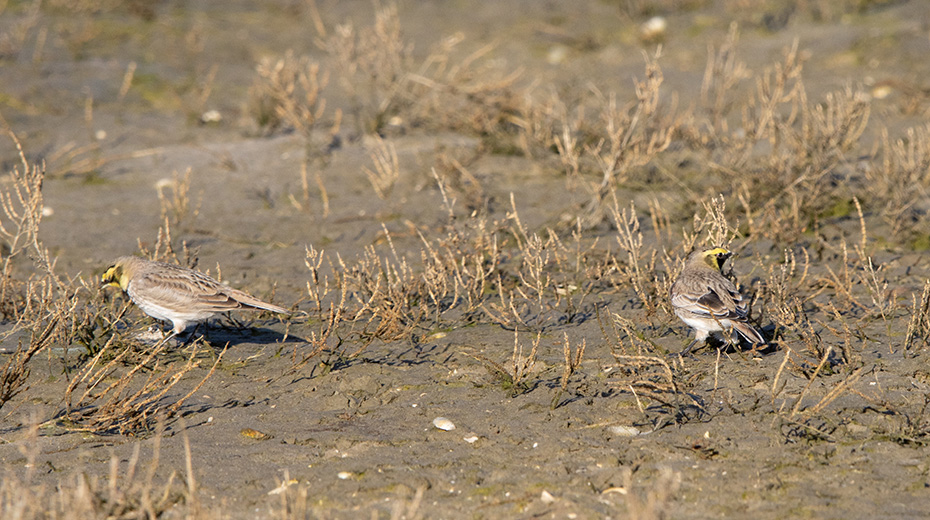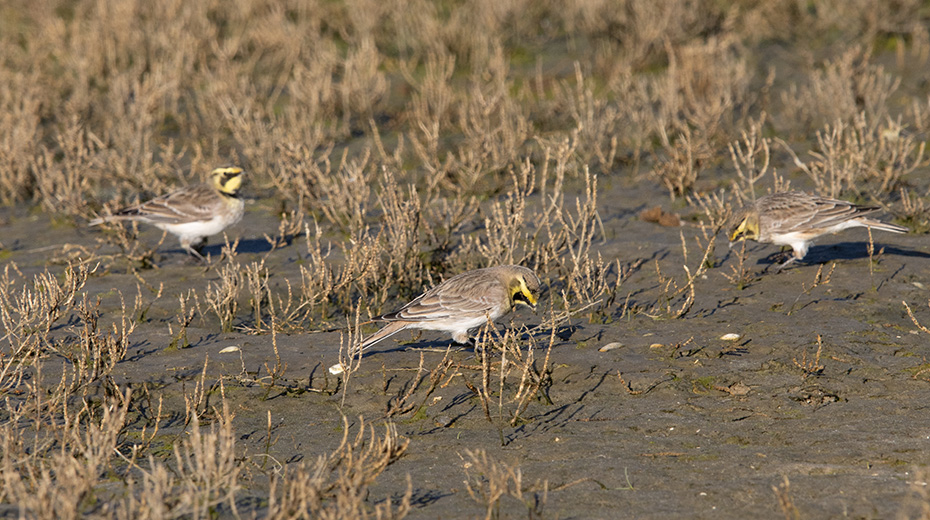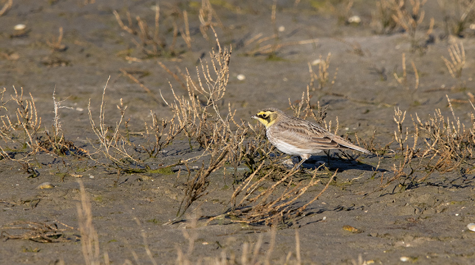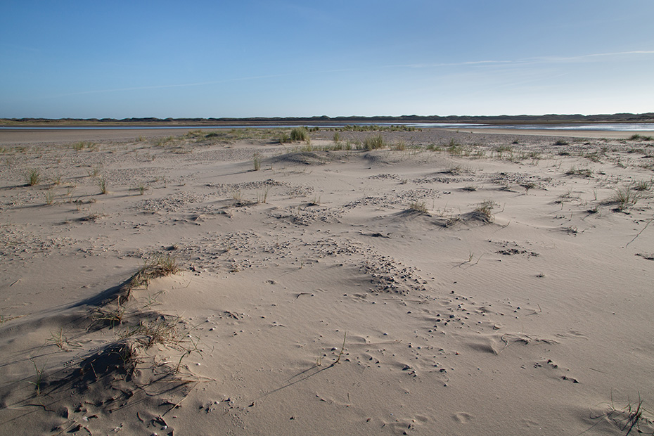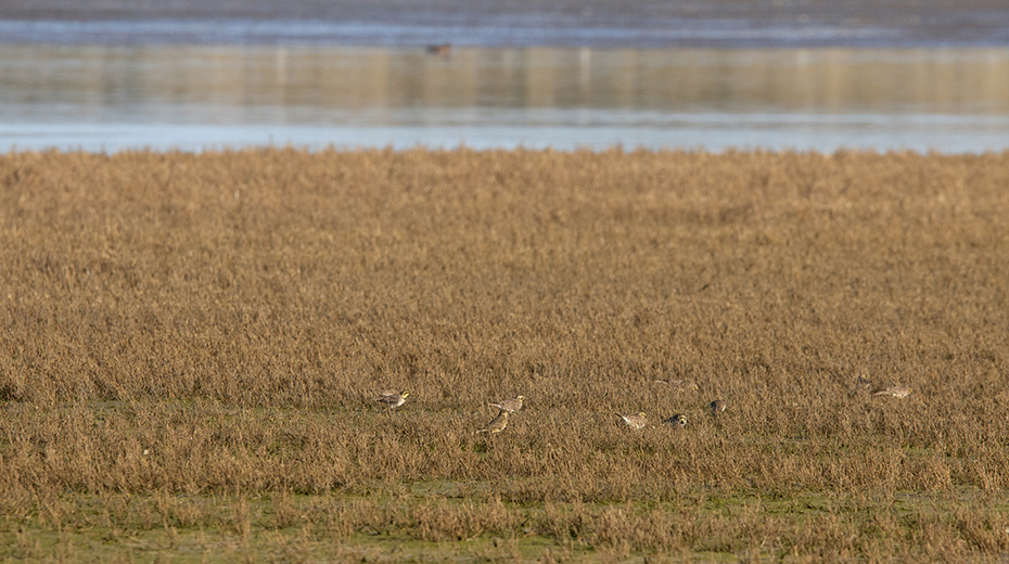 Mijn zoon en ik wandelden langs de zuidkant van het gebied richting de Noordzee. Uiteindelijk kwamen we bij het vogelgebied dat is afgesloten voor bezoekers, een plek waar de natuur ongestoord zijn gang kan gaan. Op die plek foerageerde een groep strandleeuweriken.