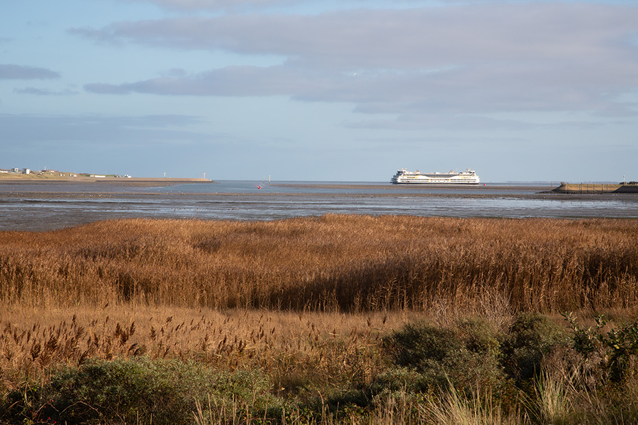 Nadat ik mijn auto had geparkeerd aan de Mokweg maakte ik een overzichtsfoto in de richting van de veerhaven. De veerboot tussen Texel en Den Helder had zojuist de haven verlaten en zette koers over het Marsdiep.