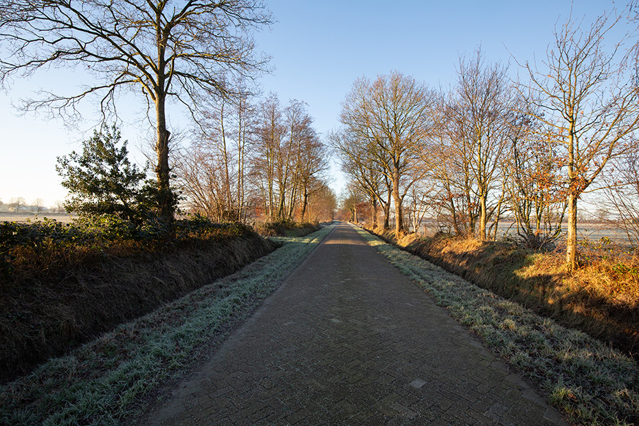 Hoewel ik nog een fotoserie heb liggen van de mooie fotokuier van Jan en mij vorige week, kies ik er toch voor om eerst aandacht te besteden aan de actualiteit. We hebben namelijk de eerste nacht met matige vorst van dit jaar te pakken. Op de velden lag een dun laagje rijp, wat voor mij de perfecte aanleiding was om mijn camera’s te pakken en eropuit te trekken. Mijn eerste stop was op een weggetje in Paasloo, waar aan weerszijden van de weg prachtige houtwallen te zien zijn.