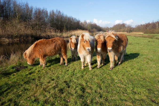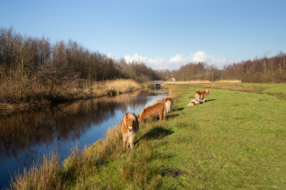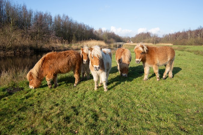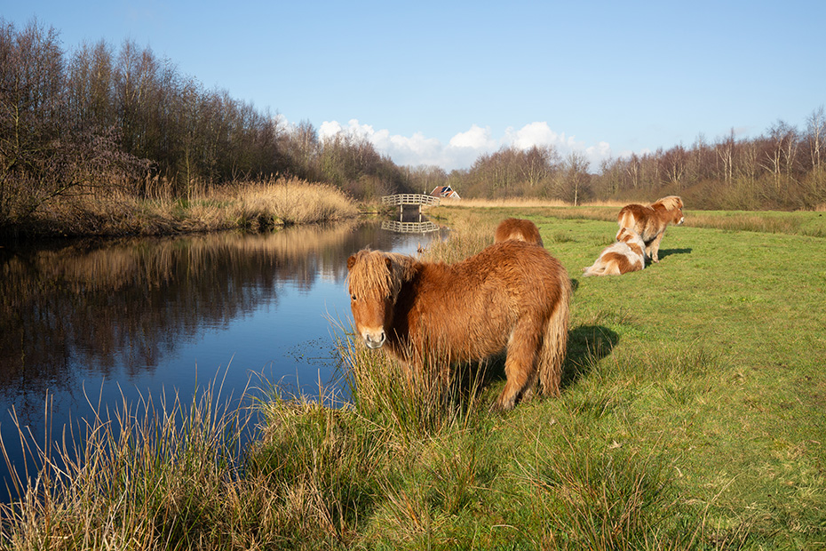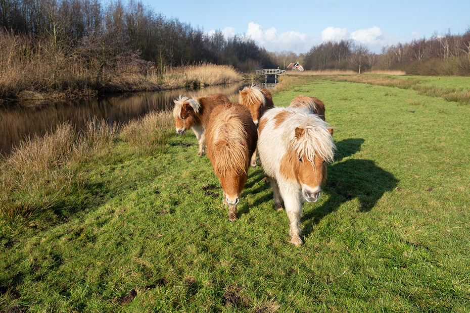 Het terrein werd begraasd door Shetlandpony’s en ik wilde deze pony’s graag van dichterbij bekijken. De Shetlander is een sterk en compact paardenras en afkomstig van de Shetlandeilanden in Schotland. Ze staan bekend om hun dichte vacht, vooral in de winter, waardoor ze uitstekend bestand zijn tegen kou en barre weersomstandigheden. Met de temperaturen in ons land hebben ze zo’n vacht niet echt nodig.