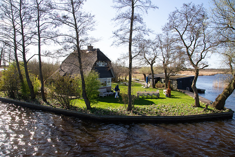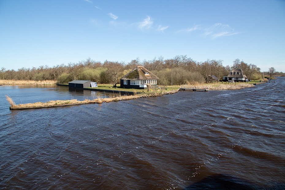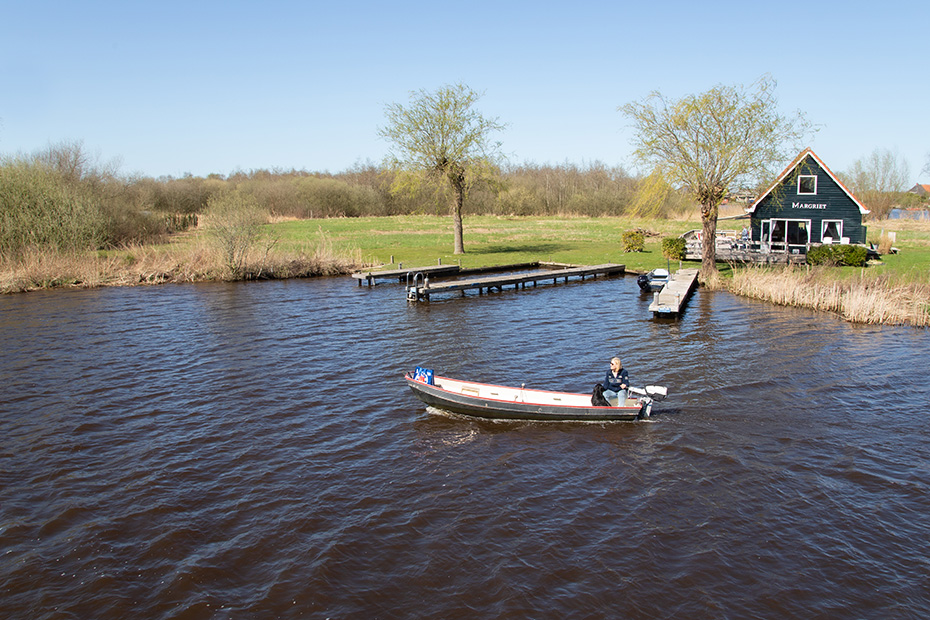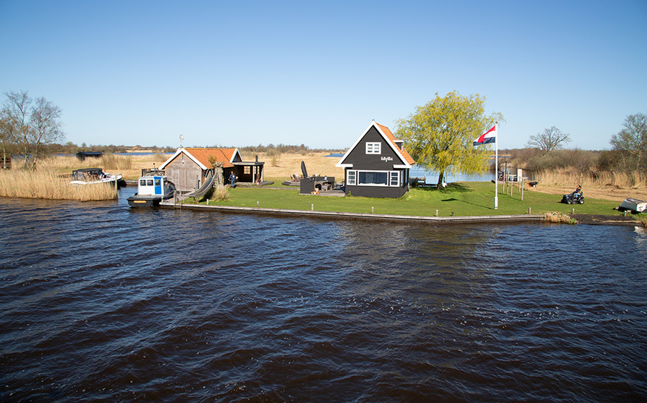 Tijdens onze vaartocht voeren we langs tientallen huisjes. Wat deze tweede woningen bijzonder maakt, is dat ze uitsluitend per boot bereikbaar zijn én niet zijn aangesloten op gas, elektriciteit, stromend water of riolering. De huisjes hebben een adres, dat begint met ‘Alde Feanen’ gevolgd door een nummer.