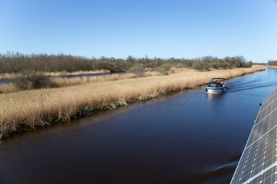 We voeren steeds dieper het hart van De Alde Feanen in. De zon schitterde op het water en zorgde voor een mooie sfeer. Aan bakboord ontvouwde zich een bijzonder landschap, een mozaïek van petgaten en smalle legakkers, ontstaan door het turfgraven tijdens de vervening.