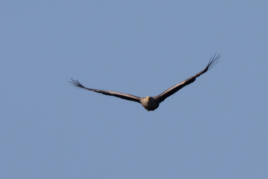 De gids ging enthousiast verder met het delen van zijn kennis over dit unieke gebied. Een groot voordeel van zo’n excursie met meerdere mensen is dat er simpelweg méér wordt gezien dan wanneer je alleen op pad bent. Ogen speuren in alle richtingen en met verrekijkers in de aanslag ontgaat de ervaren natuurkenners werkelijk niets. En zo kwam het dat we, nog maar net onderweg, al de eerste zeearend in het vizier kregen – indrukwekkend en majestueus.