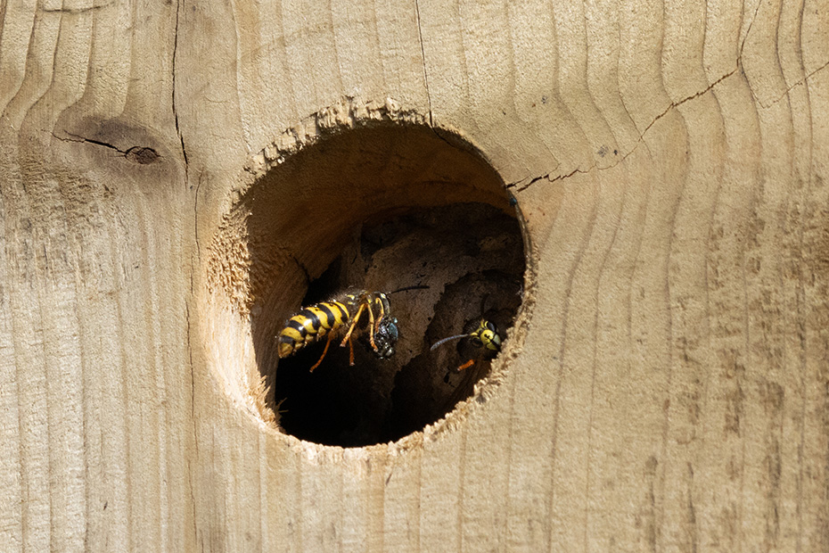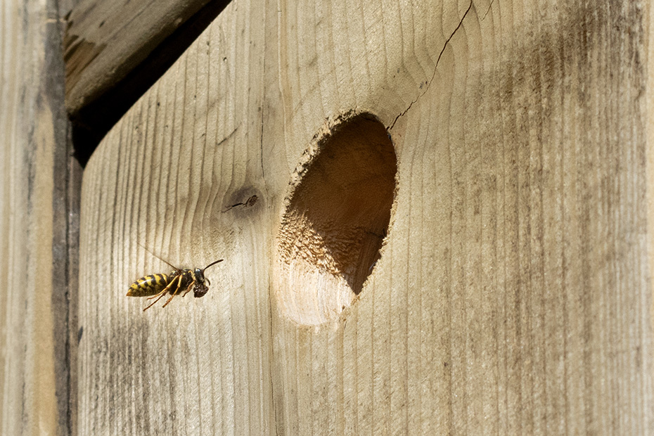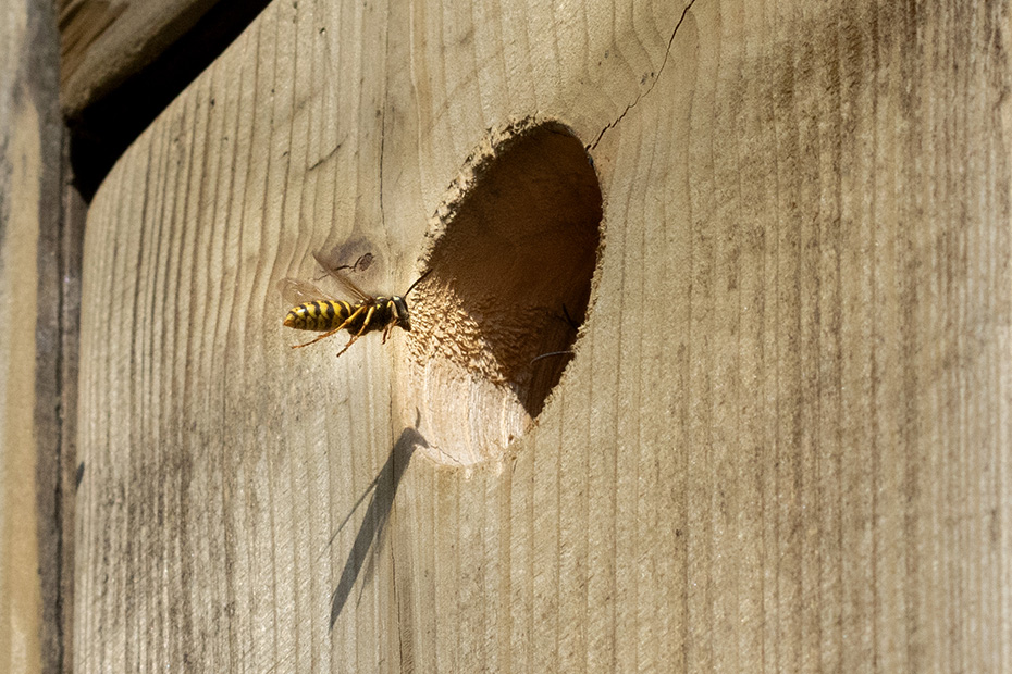 In een eerder bericht schreef ik over het nieuwe mussenhotel. Ik had niet echt verwacht dat er dit seizoen nog bewoners zouden komen, maar tot mijn verrassing is het toch gelukt! Alleen zijn het geen mussen die hun intrek hebben genomen, maar wespen. 😉
