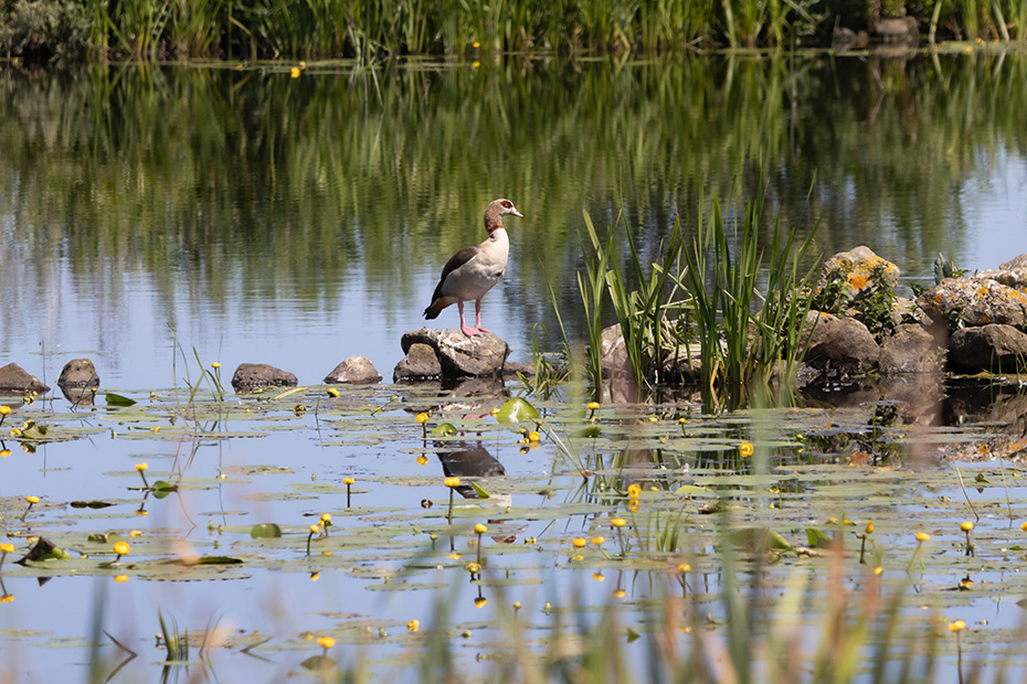 Bij het gemaaltje aan de Bûtendiken stopten we opnieuw. Daar heb je een prachtig uitzicht over het water. Op een vlot in het water zaten visdiefjes met vermoedelijk jongen. Op een steen stond een nijlgans alsof hij de onbetwiste heer en meester van het gebied was.