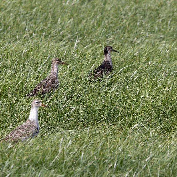 Aan het einde van de middag reed ik over de Wouddijk, richting Dokkum. In een weiland langs de weg viel mijn oog op een groep vogels. Ik zette de auto in de berm en pakte mijn camera met telelens erbij. Toen ik door de zoeker keek, herkende ik ze meteen: het waren kemphanen. Er stonden in totaal vijf exemplaren, elk met een eigen karakteristiek verenkleed.