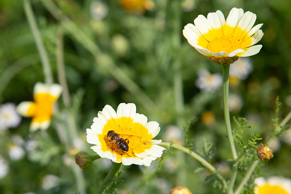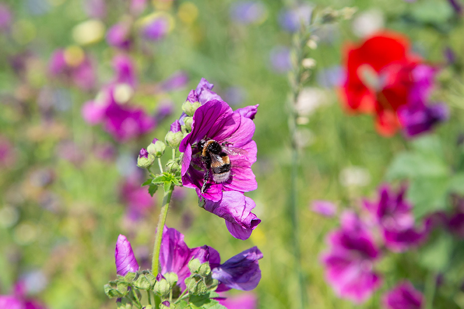 Ik vervolgde mijn weg. Een eindje verderop trof ik een bloemrijke akkerrand. Deze akkerranden zijn ingezaaid met mengsels van inheemse bloemen en kruiden zoals klaproos, wilde cichorei en zonnebloem. Deze akkerranden worden steeds vaker toegepast door boeren in provincies als Friesland, Groningen en Drenthe om de biodiversiteit te bevorderen, natuurlijke plaagbestrijding te stimuleren en het landschap mooier en aantrekkelijker te maken.