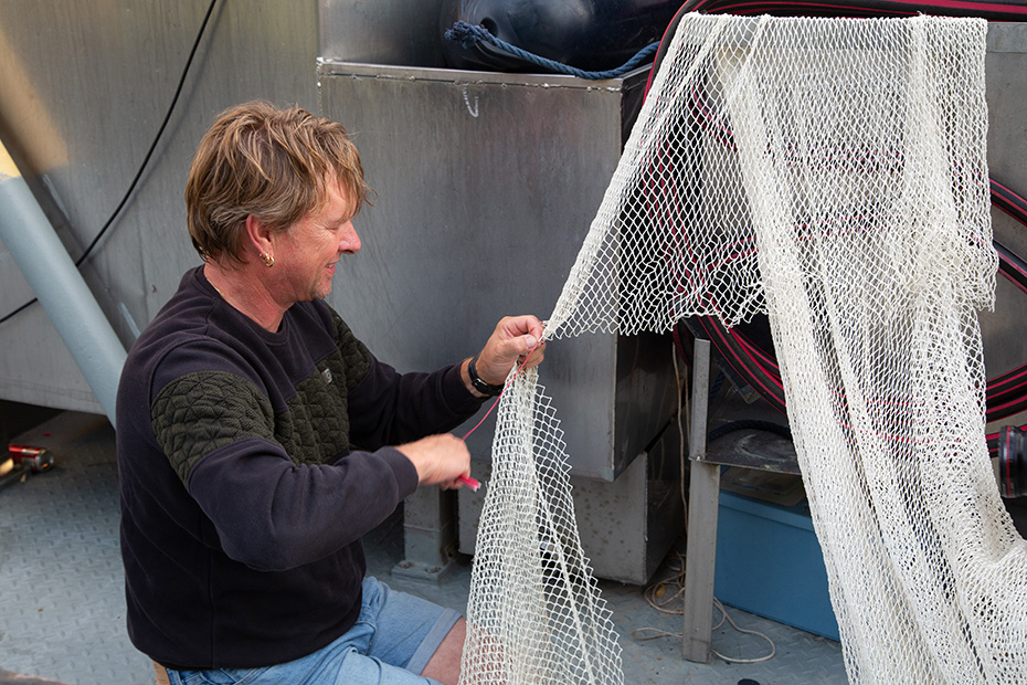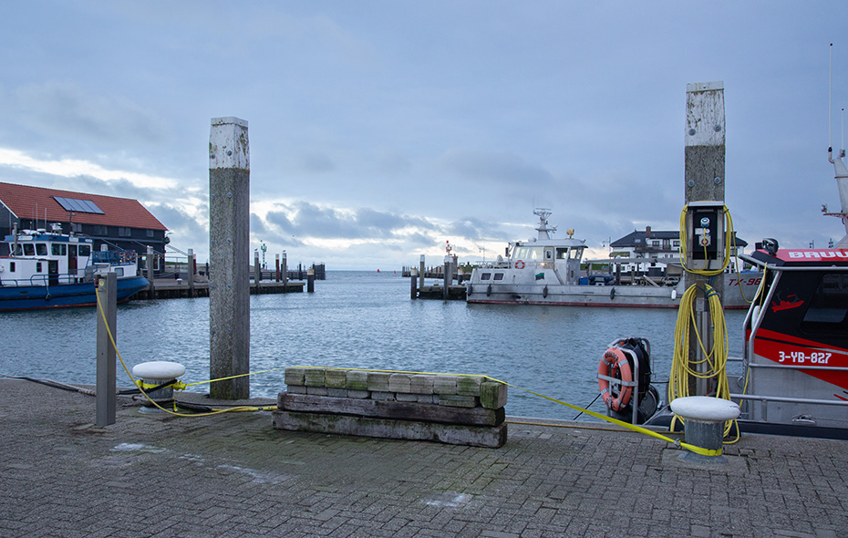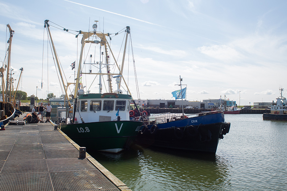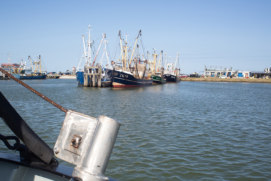 In de vissershaven voeren we naar de kade, waar de zoon, tevens compagnon, al op ons stond te wachten. Hij stapte aan boord en legde de kotter vakkundig vast. Er volgde een warme begroeting tussen vader en zoon. Daarna was het tijd om de handen uit de mouwen te steken: alle vakantiespullen moesten namelijk van boord.