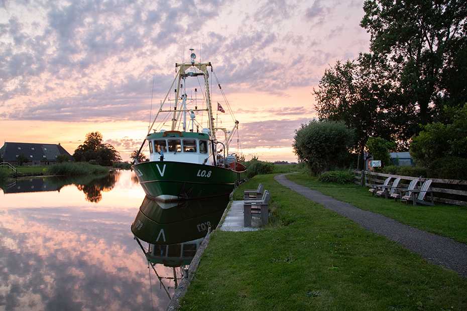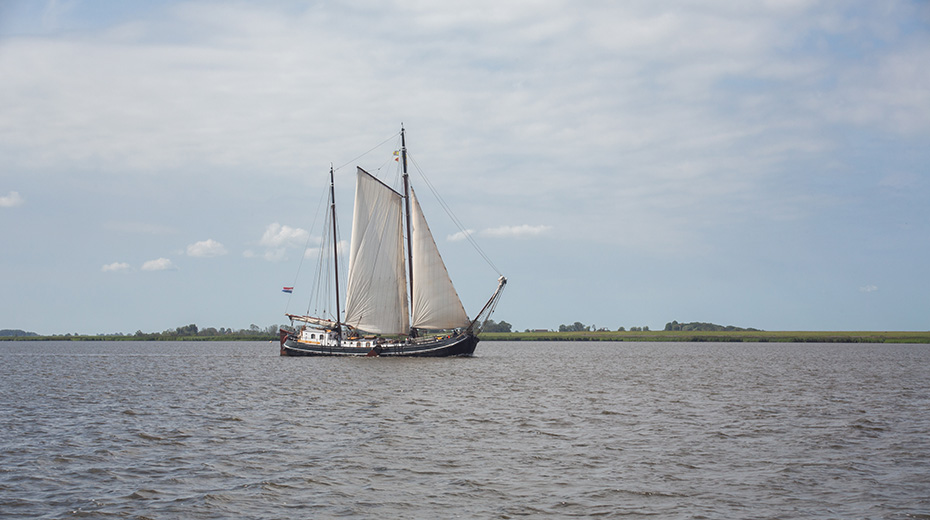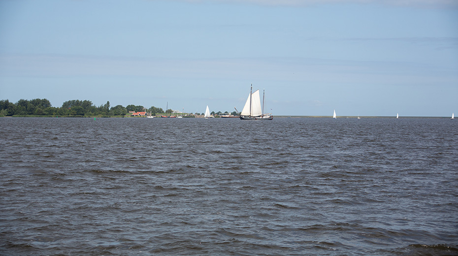 Het was heerlijk om op het Lauwersmeer te varen: de weidsheid, de geur van het water, het zachte gekabbel van de golfjes en het schitterende lichtspel op het oppervlak. Staand op het dek voelde ik me de koning(in) te rijk en helemaal in mijn element.