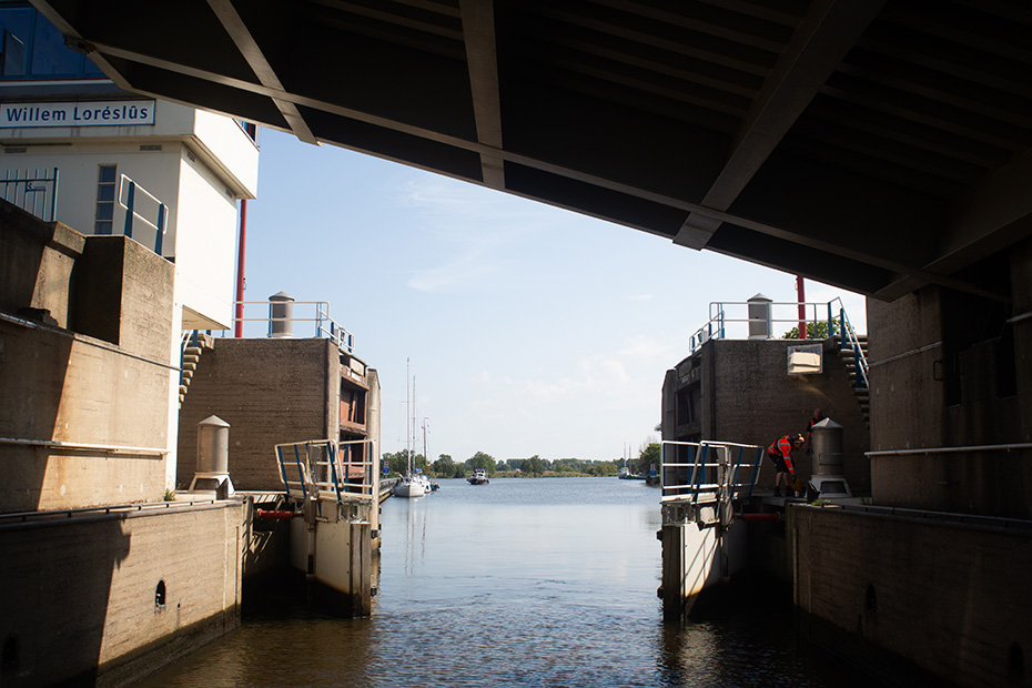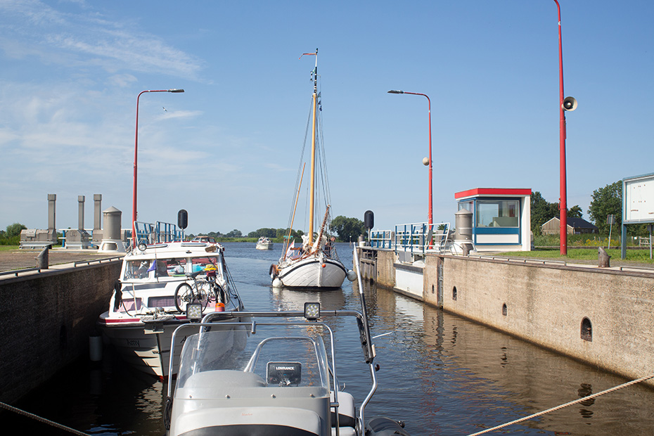 We voeren langs Dokkumer Nieuwe Zijlen. Dat is een bekend plekje, omdat we daar ooit een familieweekend hebben doorgebracht. De Willem Lorésluis, met een verval van ruim drie meter, bracht ons vervolgens naar het Lauwersmeer.