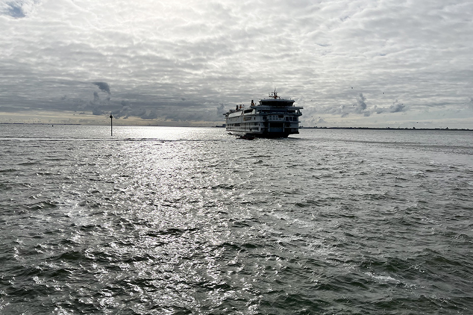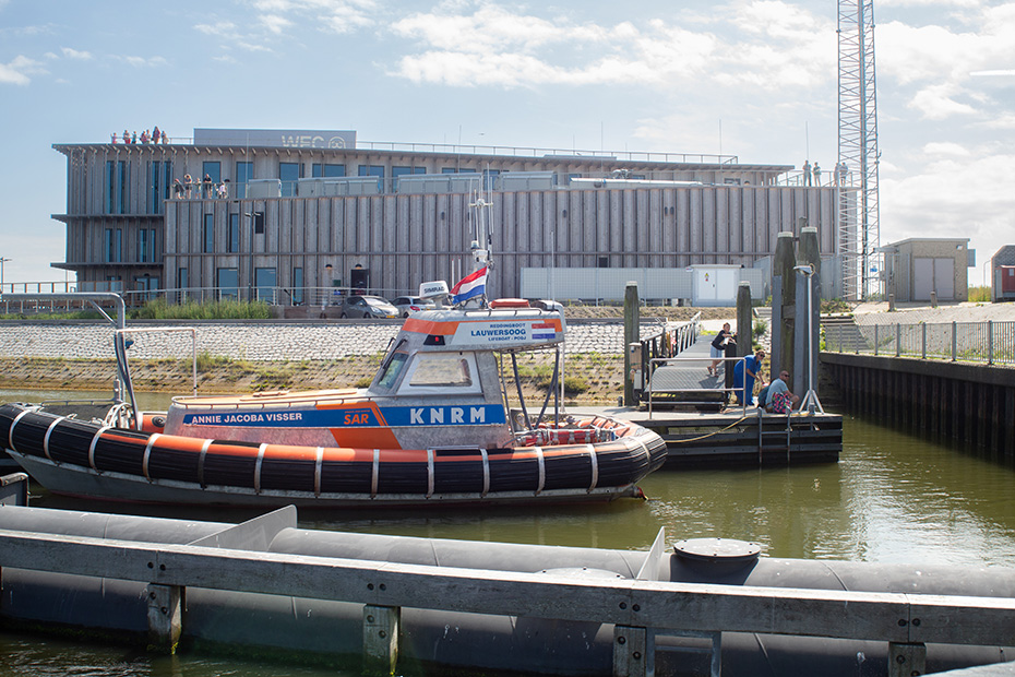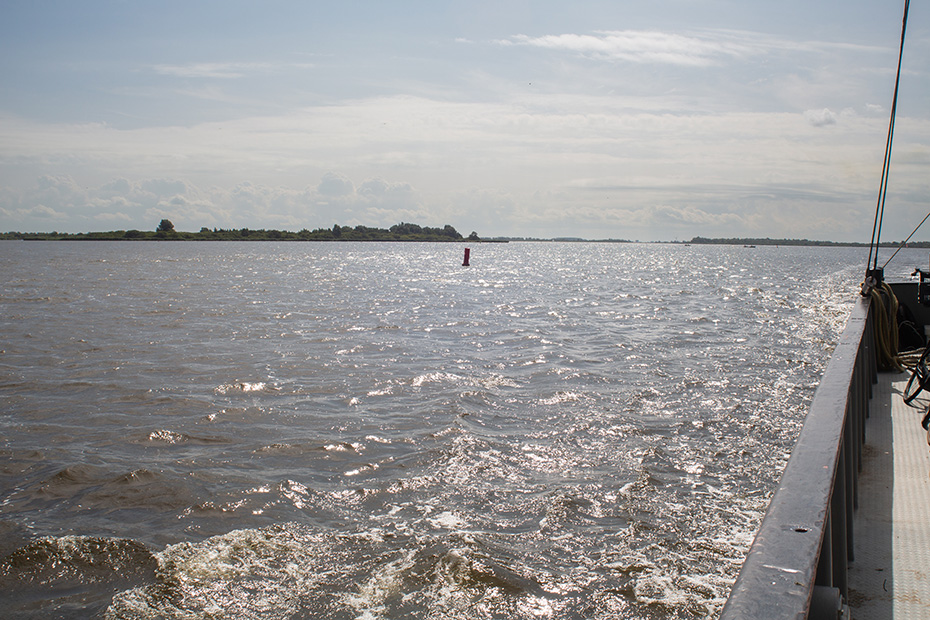 Vanaf het Lauwersmeer voeren we richting Lauwersoog. Het gemaal was al van verre te zien, een herkenningspunt in het vlakke landschap. Via de Robbengatsluis bereikten we de haven van Lauwersoog. We voeren langs het WEC en zagen de veerboot vertrekken, op weg naar Schiermonnikoog