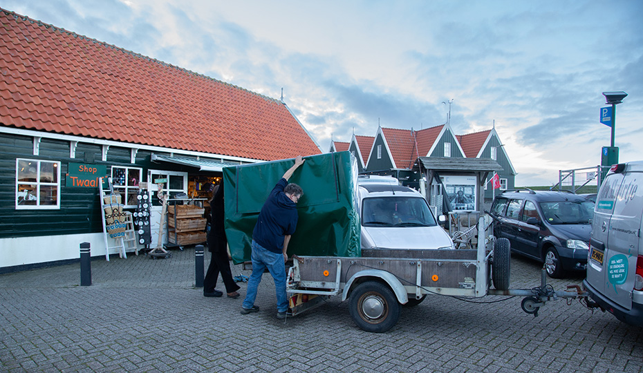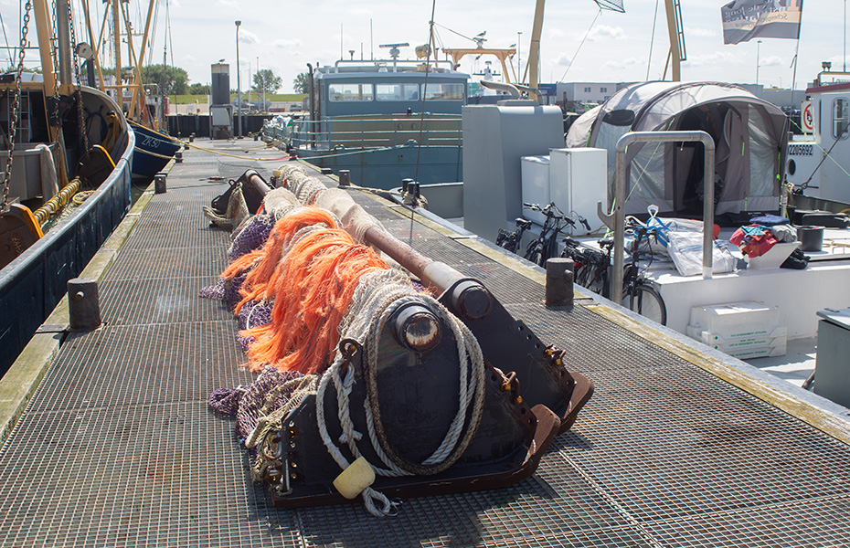 Daarna voer de kotter naar de eigen aanlegplek. Al snel kwam de brandstofboot langszij om de dieseltank weer vol te tanken. Op de kade lag de tuigage van de kotter. Een paar vrienden waren opgetrommeld om alles weer te installeren. Ik heb dat niet meer afgewacht, een van de dochters bracht me keurig terug naar de camping.