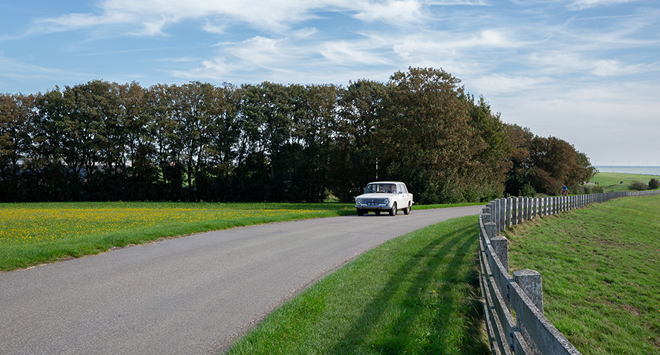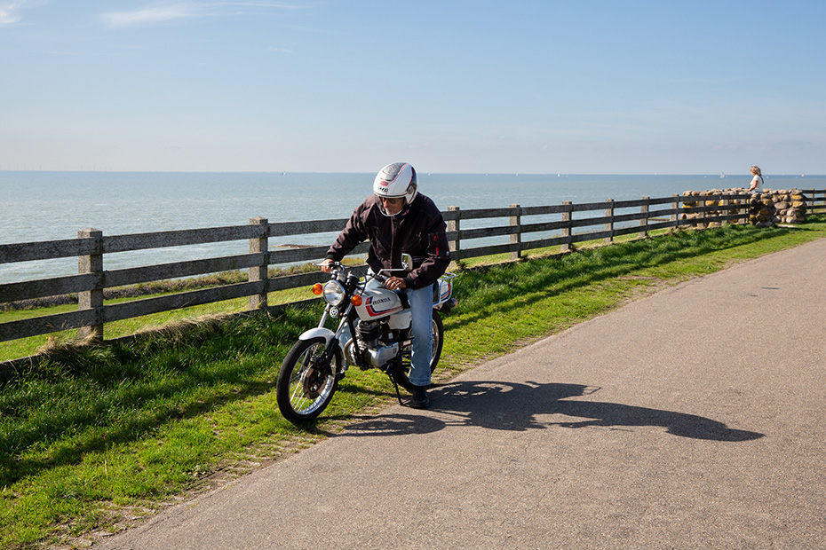 Onze laatste stop was bij het Reaklif. Vanaf dit punt heb je een werkelijk fenomenaal uitzicht over het IJsselmeer. Blijkbaar is de route die wij reden ook populair bij liefhebbers van oldtimers, want inmiddels zijn we daar al meerdere keren oude brommers en klassieke auto’s tegengekomen.