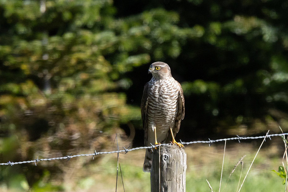 Een paar weken geleden gingen mijn fotomaatje en ik samen op stap. Dit keer startten we in de Kop van Overijssel. Zoals altijd begonnen we de dag met een kop koffie en iets lekkers erbij. Terwijl ik naar buiten keek, zag ik tot mijn verrassing een sperwer op een paaltje naast onze tuin landen. Ik had net genoeg tijd om één acceptabele foto te maken, voordat hij weer wegvloog.