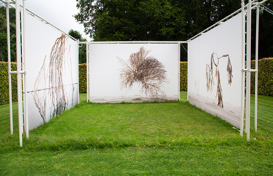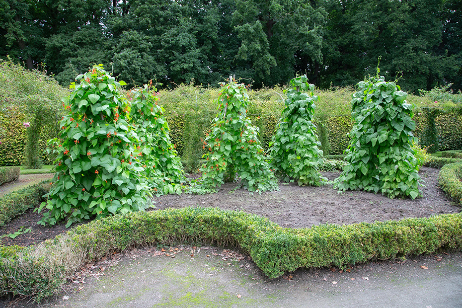 Na de rondwandeling door de siertuin liep ik verder naar de moes- en kruidentuin. Aan het begin staat een groot kunstwerk van Rob Sweere. Meer hierover is te vinden op zijn website. Zo’n tuin spreekt me nog meer aan dan de siertuin waar ik even daarvoor doorheen was gewandeld. Jammer genoeg kon ik niet de hele tuin bekijken, want de lucht werd steeds dreigender. Uiteindelijk moest ik op een drafje terug naar de auto… die ik nét niet droog bereikte.
